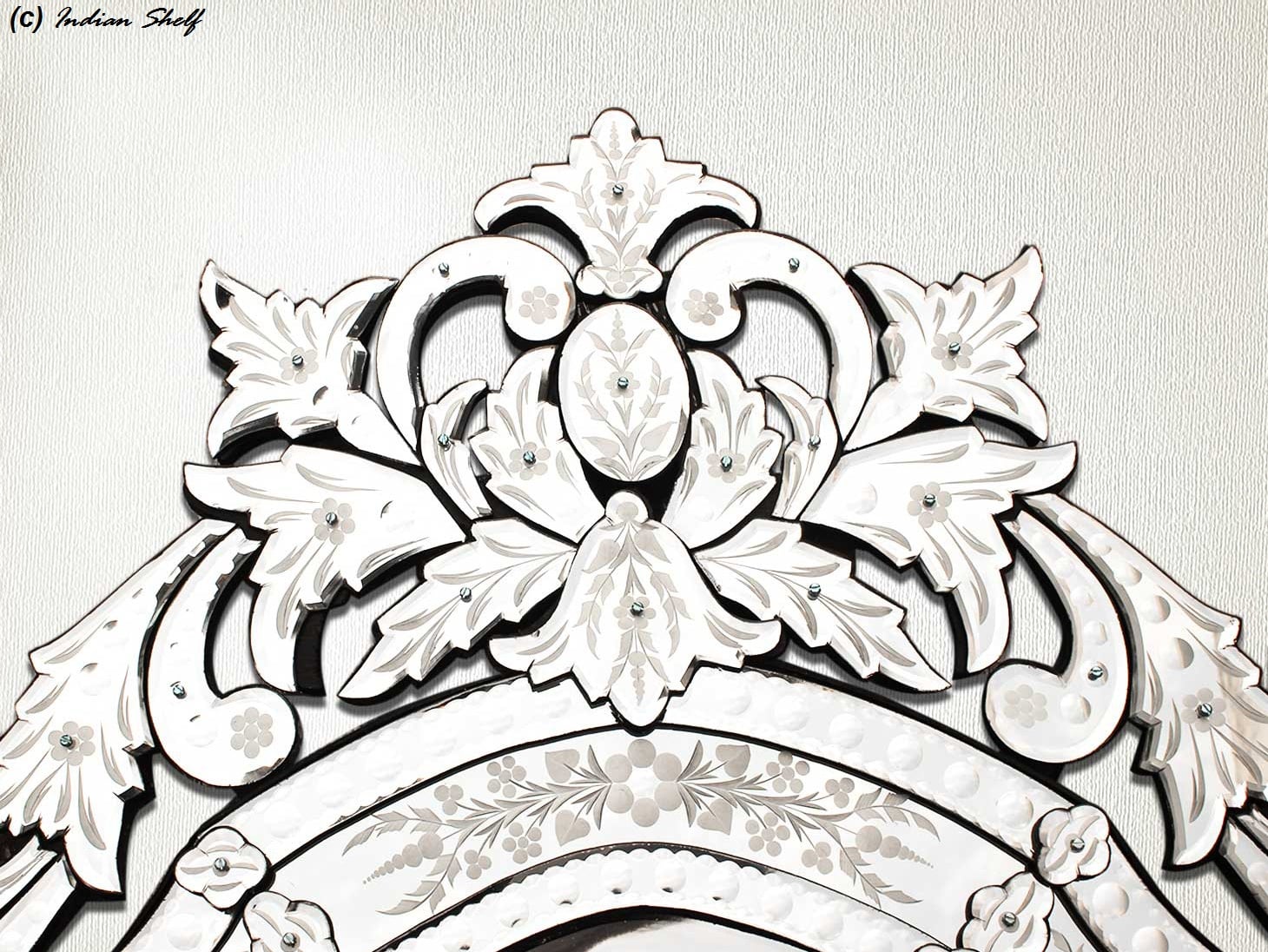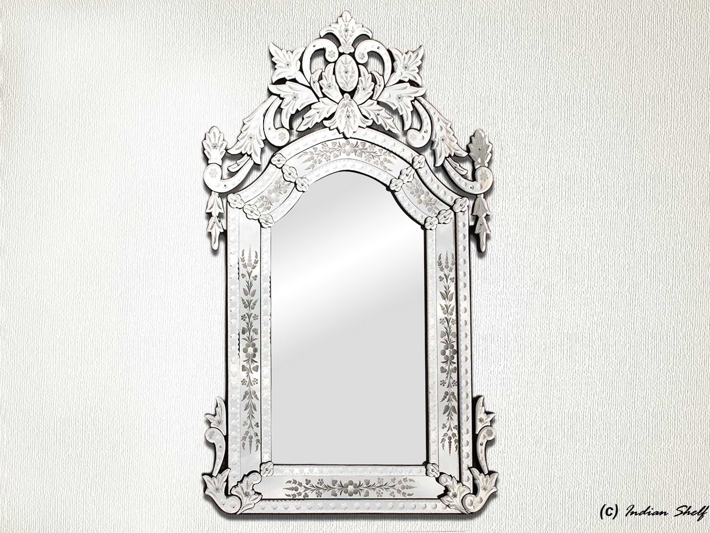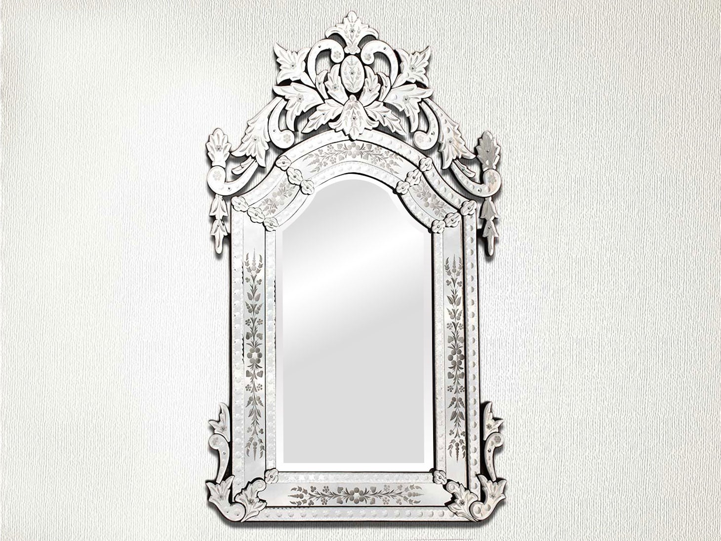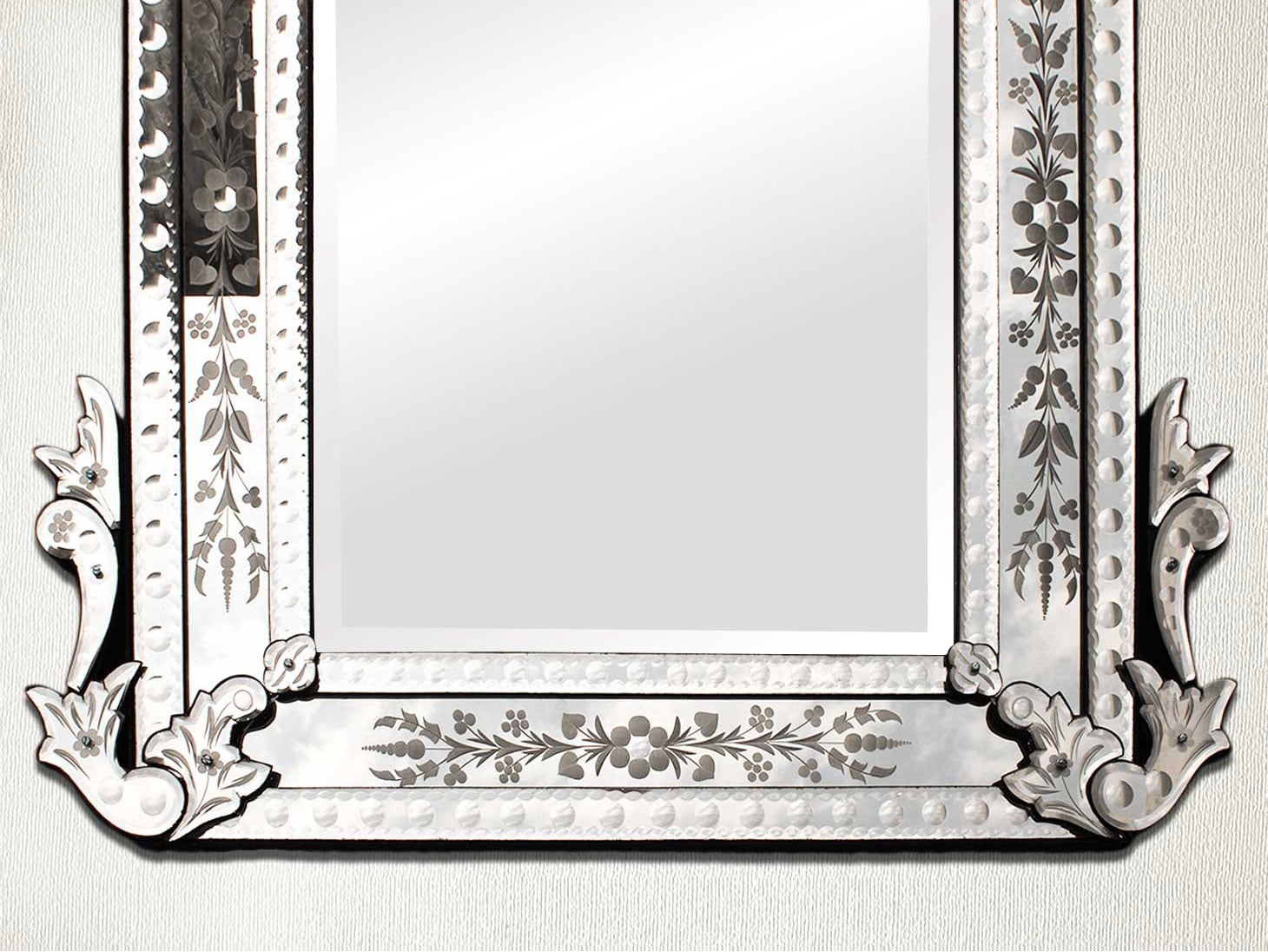 Long Venetian Mirror-48.5 inches X 30 inches.A simple way to incorporate an elegant look into any room is the addition of Venetian mirrors these treasured pieces reflect light and serve as an artistic focal point transforming a room into a glamorous environment with a bit of old world elegance.