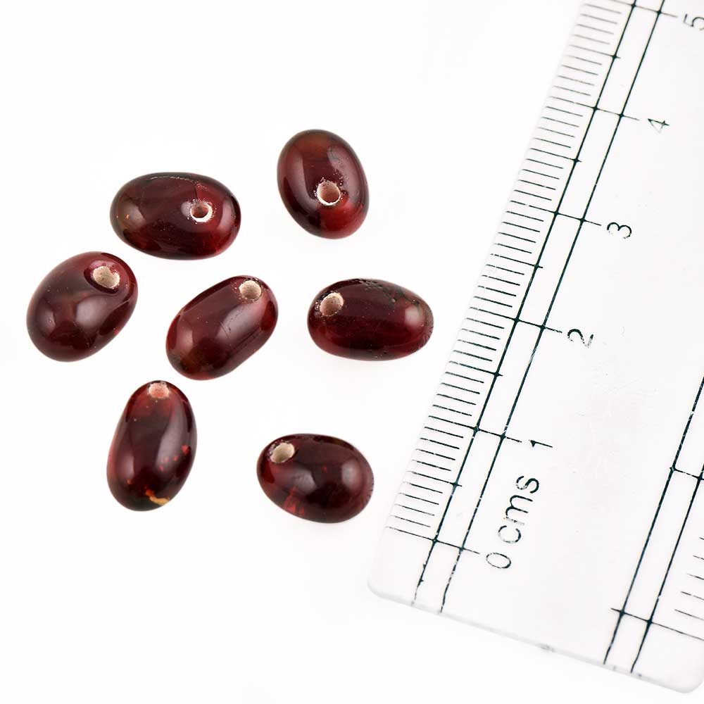 Loose Maroon Glass Transparent Oval Shaped Beads For Jewelry Making (12 In Pack)
