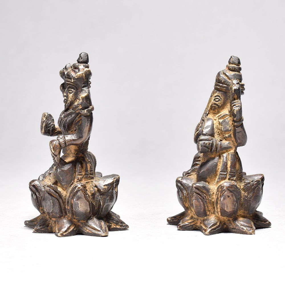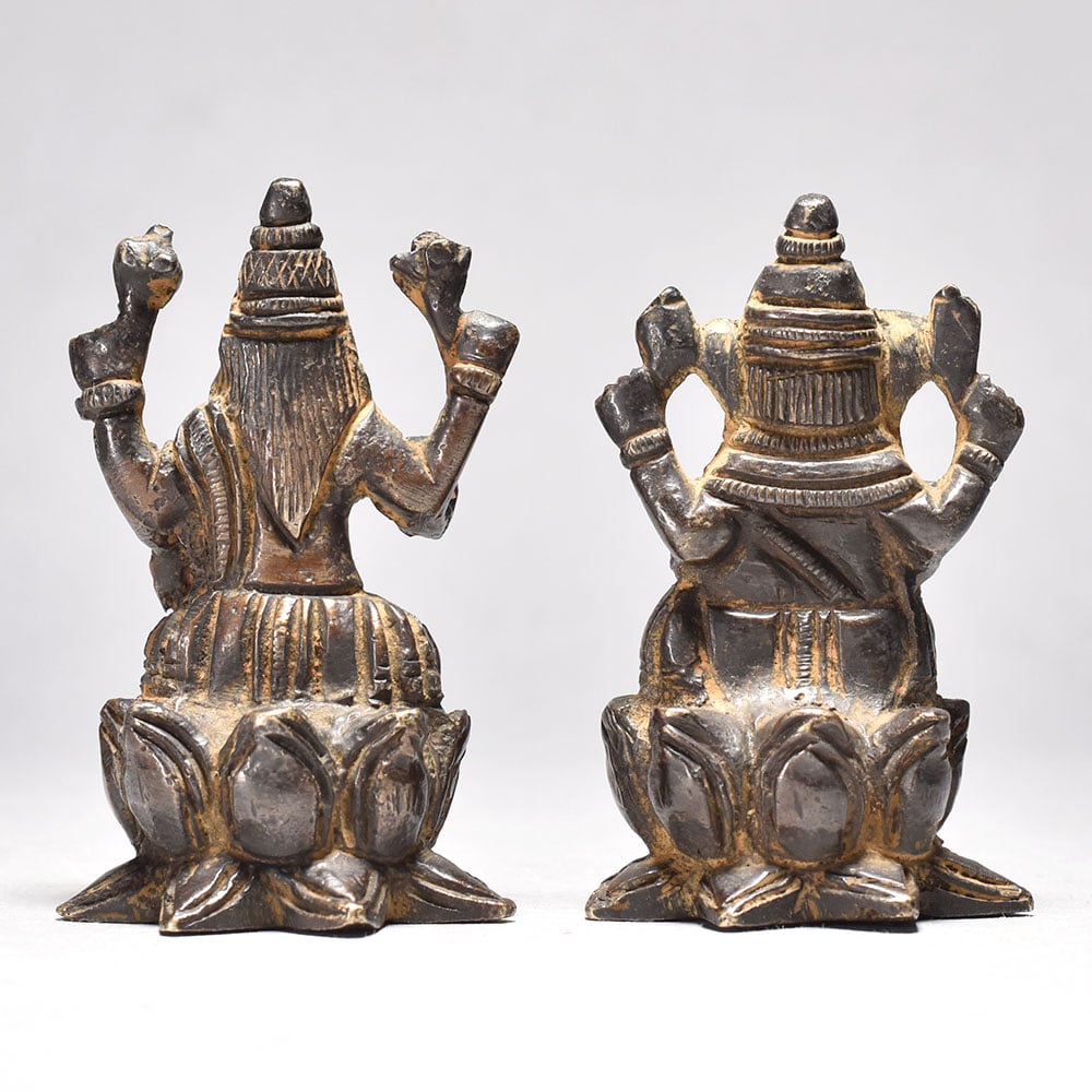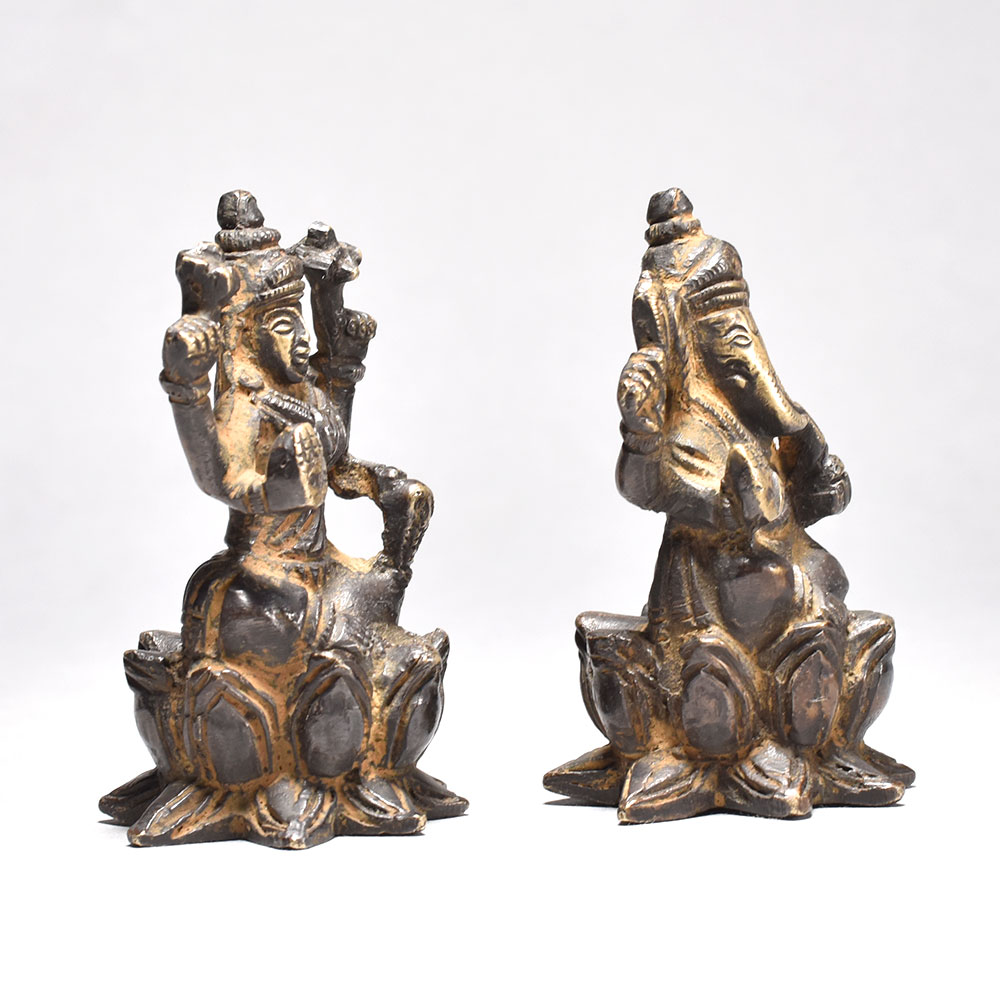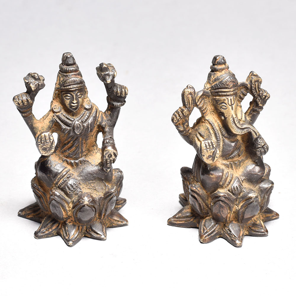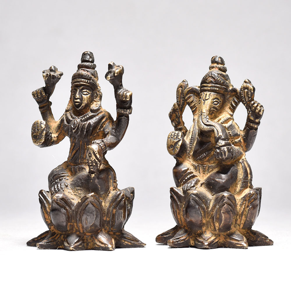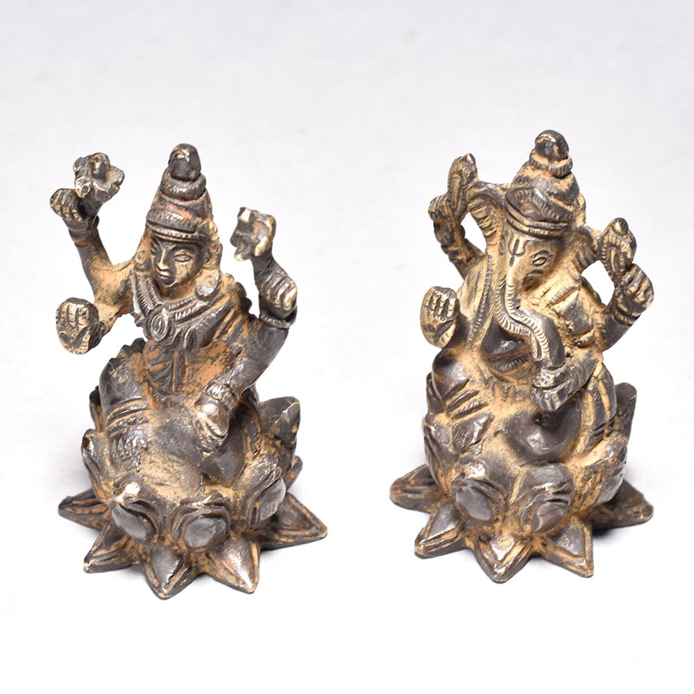 Celebrate divine blessings with this Antique Lord Ganesha and Goddess Lakshmi statue sitting on a lotus flower. Crafted from brass, this artistic piece is perfect for Indian homes. - Intricately crafted brass statue with vintage design. Depicts Lord Ganesha and Goddess Lakshmi seated on a lotus, symbolizing prosperity and wisdom. Ideal for worship, home decor, or gifting on festive occasions. Enhances the spiritual and cultural ambiance of your space. A must-have for traditional Indian households. This unique handcrafted piece is a testament to traditional artistry, blending functionality with beauty and making it a treasured collectible for years to come. This unique handcrafted piece is a testament to traditional artistry, blending functionality with beauty and making it a treasured collectible for years to come. This unique handcrafted piece is a testament to traditional artistry, blending functionality with beauty and making it a treasured collectible for years to come.