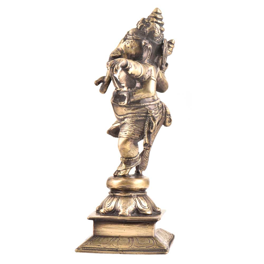 Lord Ganesha Figurine Brass Finely Engraved Dancing