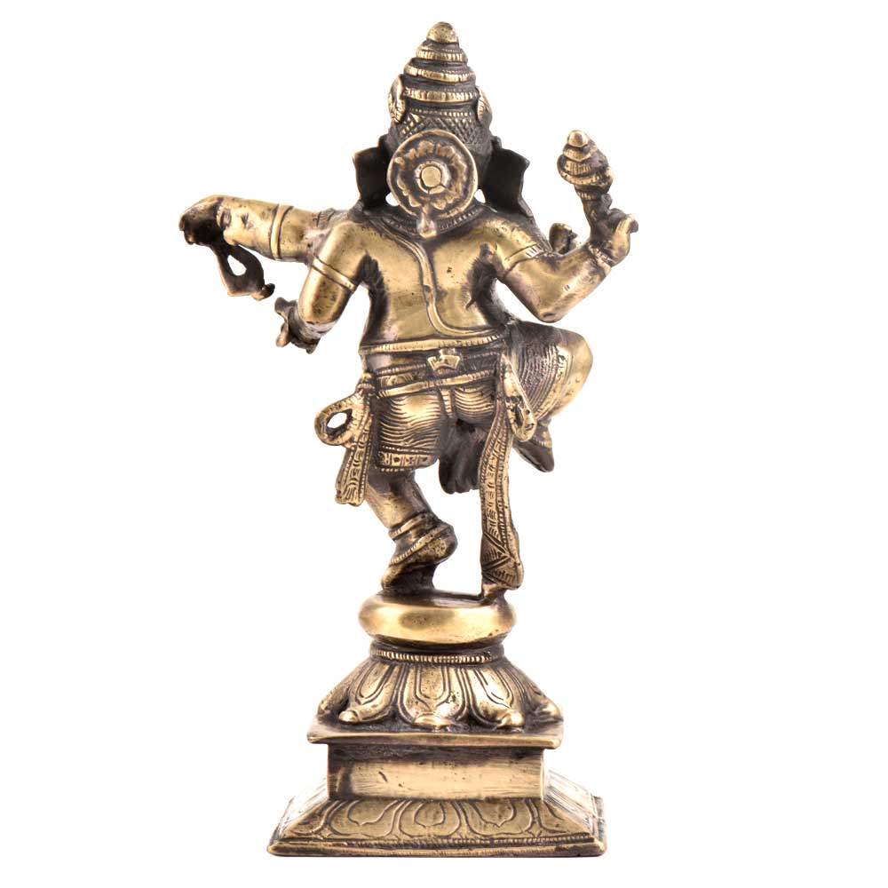 • Lord Ganesha Figurine Brass Finely Engraved Dancing