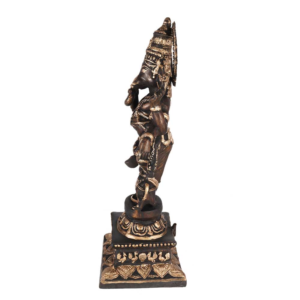 The Lord Ganesha statue is made of solid brass and comes in black and golden shades. With this religious piece, you can add beautiful accents to the decor of your home, puja room, garden, hotels, and office arena.