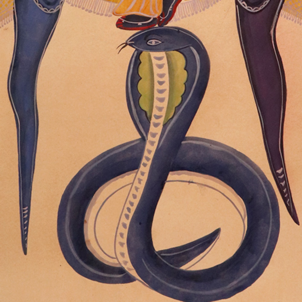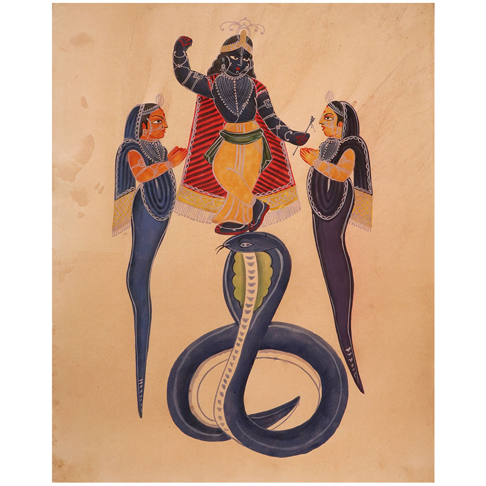Bring the divine grace of Lord Krishna into your home with this stunning vintage calendar art paper painting. Depicting the beloved deity reclining on the coils of the mighty Naag, this captivating work of art will elevate your decor and nourish your soul. Gaze upon this enchanting image and feel your worries melt away. The serene pose of Lord Krishna, his eyes closed in contemplation, radiates an aura of peace and tranquility. The mighty Naag, coiled beneath him, symbolizes the divine protection and grace that envelops the Lord. This vintage calendar art piece is a must-have for any lover of Indian spirituality and culture. Display it in your meditation space, living room, or office to infuse your environment with the sacred energy of this beloved deity. Whether you're decorating your home or seeking a thoughtful gift, this painting will captivate all who behold it.