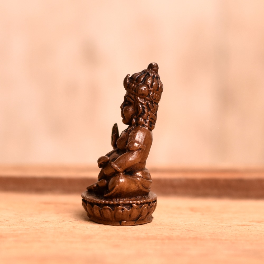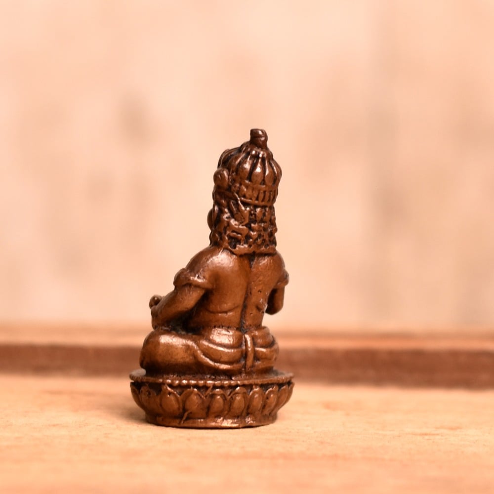 The Lord Kubera Murti is a beautiful copper statue of the revered Indian god, Kubera. The statue is crafted by skilled Indian craftsmen, who have painstakingly created every detail with care and precision. The statue depicts Lord Kubera sitting, as he is often depicted in Indian temples, and is a symbol of wealth, prosperity, and fortune. Copper is considered to be an auspicious metal and is often used in the creation of religious and spiritual objects in Indian culture. The Lord Kubera Murti is no exception, and it is believed that having this statue in your home can bring good luck, success, and abundance. This stunning statue is perfect for home decoration, and can be placed in your prayer room, living room, or any other space where you want to create a peaceful and serene atmosphere. It also makes for an ideal gift for special occasions, such as weddings, housewarming parties, or festivals. Buy this beautiful Lord Kubera Murti online to get a hassle-free delivery at your doorstep. With its beautiful craftsmanship and rich cultural significance, the Lord Kubera Murti is sure to bring joy and blessings into your life.