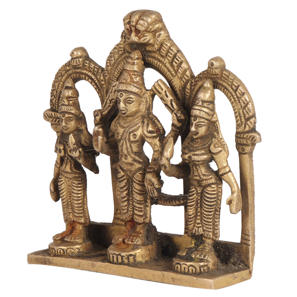 Lord Murugan/Kartikeya Brass Statue with Valli and Devasena