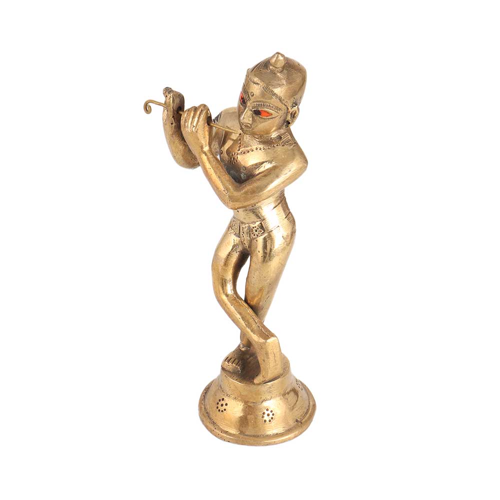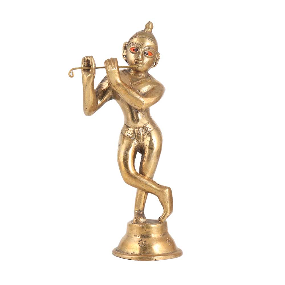 This stunning statue depicts Lord Krishna, one of the most revered deities in Hinduism, standing with poise and grace. Made with exquisite attention to detail, this statue is an ideal addition to any prayer room at home, office, restaurant, hotel, cafe, or shop. It can also be used as a decorative element to enhance the aesthetic appeal of any space. The statue showcases Lord Krishna's divine beauty and radiates a sense of peace and tranquillity. The intricate detailing on the statue adds to its charm, capturing the essence of Lord Krishna's personality and teachings. Its presence can help create a serene environment for prayer, meditation, and reflection. An auspicious gift for every special and festive occasions for your loved ones.