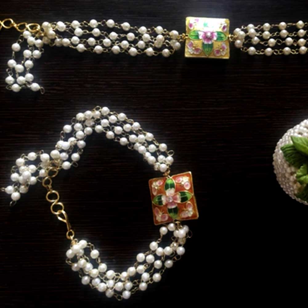 Lumba - Hand pained golden denter pieces with pearl ganthan.