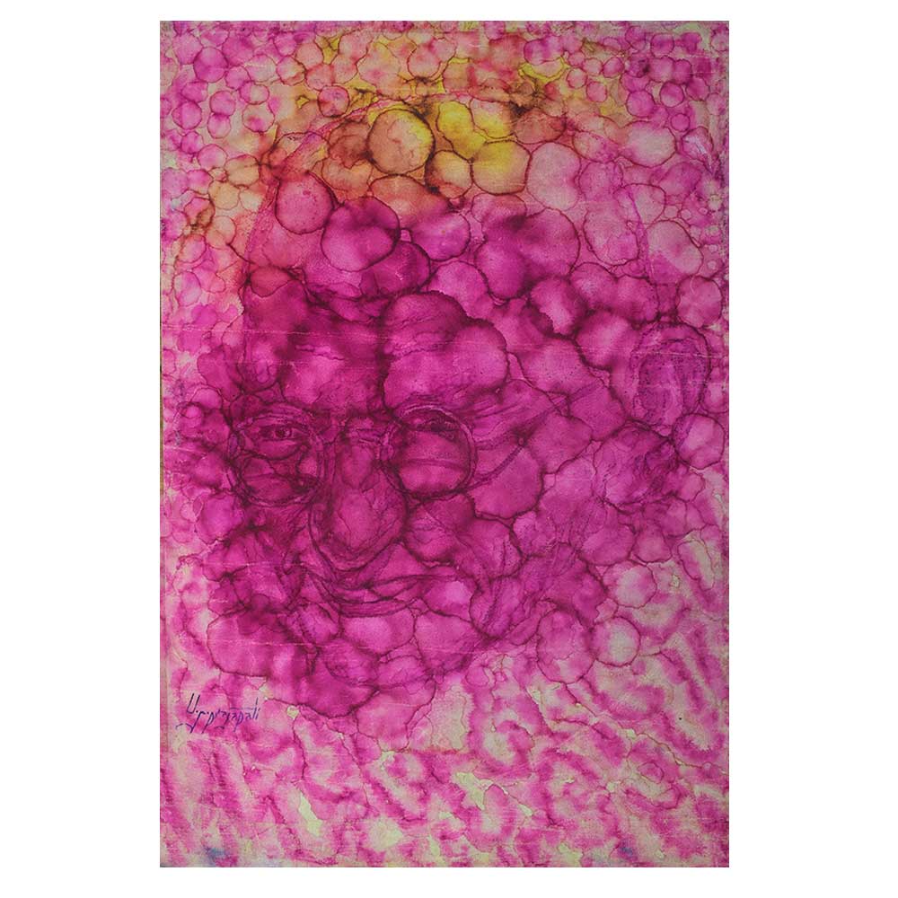 An abstract painting of our Indian leader and national figure Mahatma Gandhi also known as "The Father of Nation." With magenta background and little circular pattern, Gandhi's smiling face with spectacles is also depicted in this artwork. It represents sacrifice, patriotism, Indian heritage, willpower, independence fighter, national leader and courage among other things.