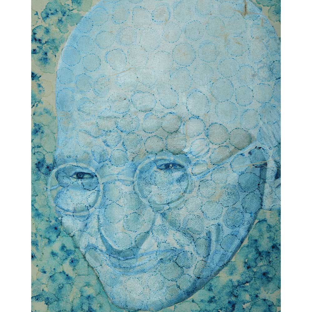 Mahatma Gandhi Face Blue Abstract Painting On Cloth