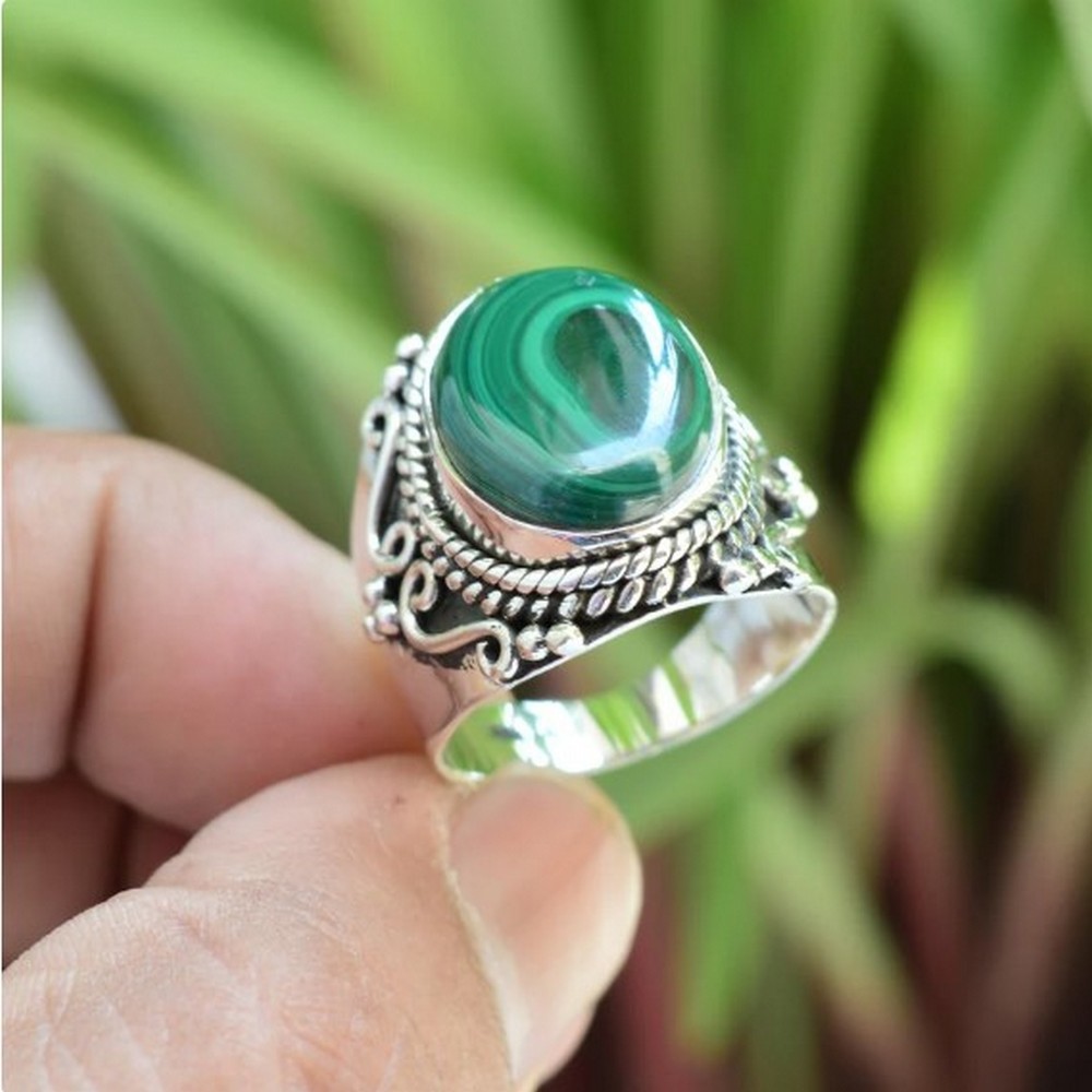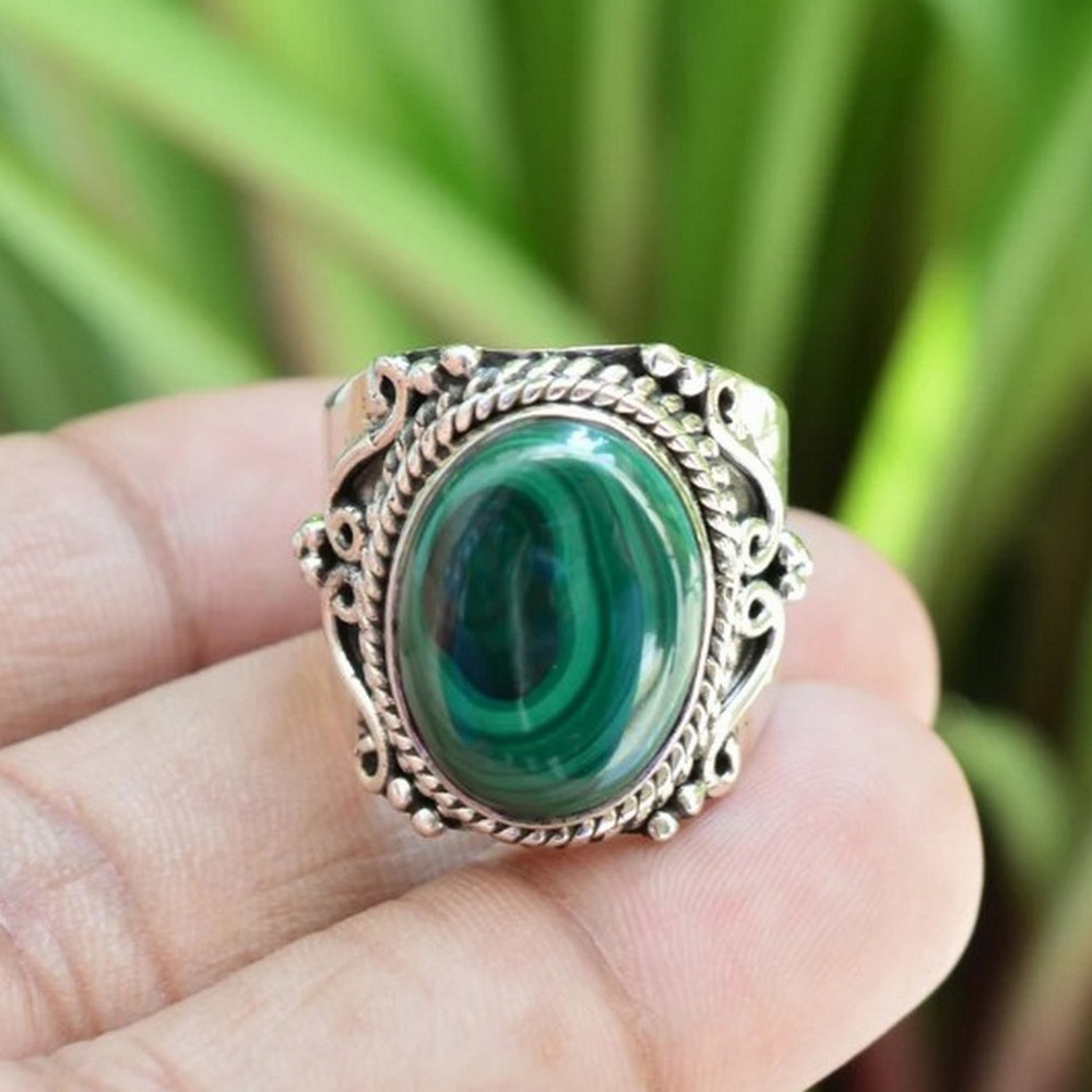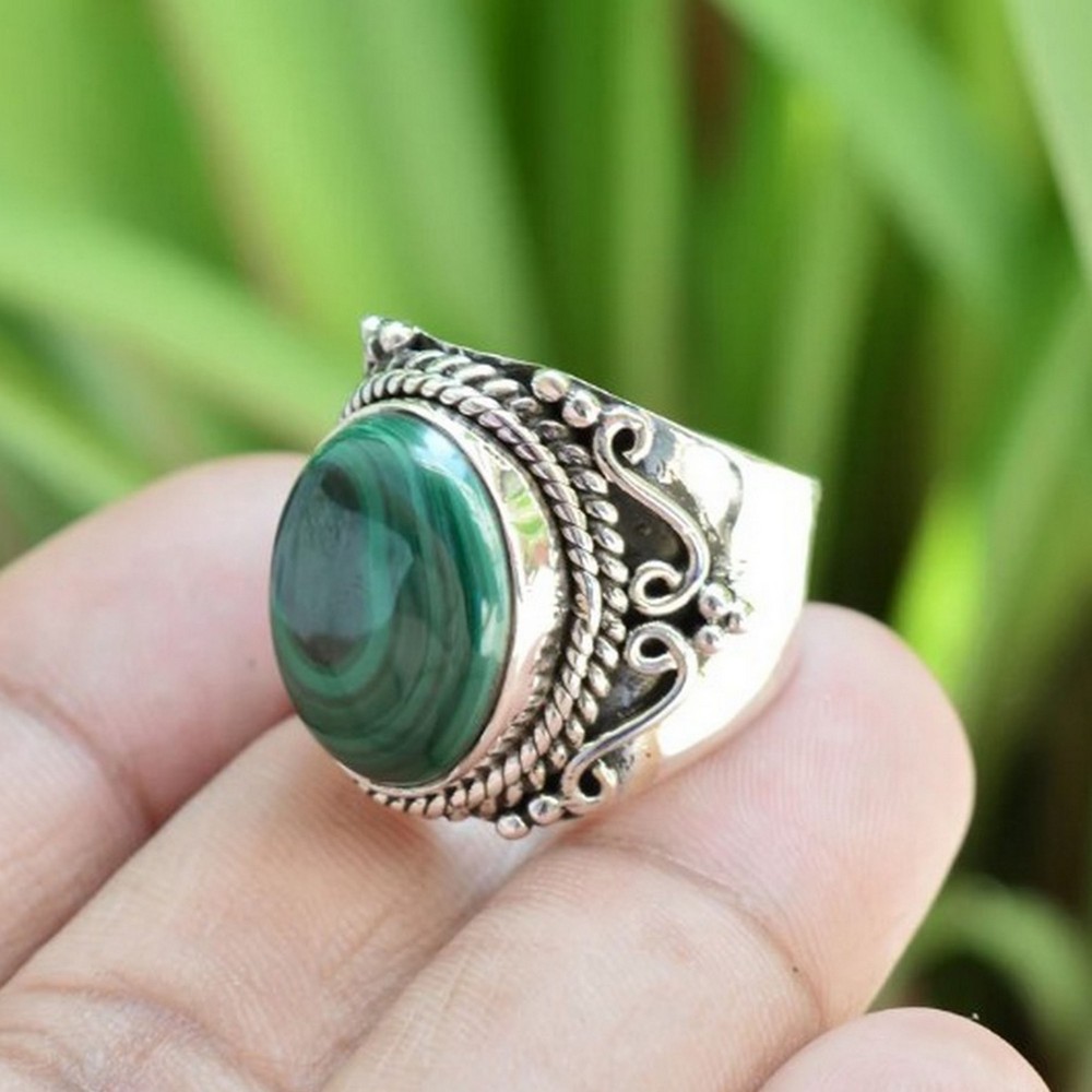 Reveal the allure of our malachite 925 sterling silver ring handmade, where natural malachite (oval cut), 925 sterling silver and handmade come together to create a artistic expression. This ring is for boho lovers, each piece reflecting individuality and care. Packed & quality-checked by Indianshelf.