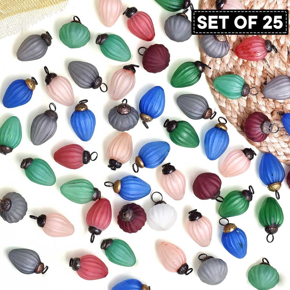 Matte Finish Frosted Tiny Christmas Ornaments In Assorted Styles Set of 25 Pcs