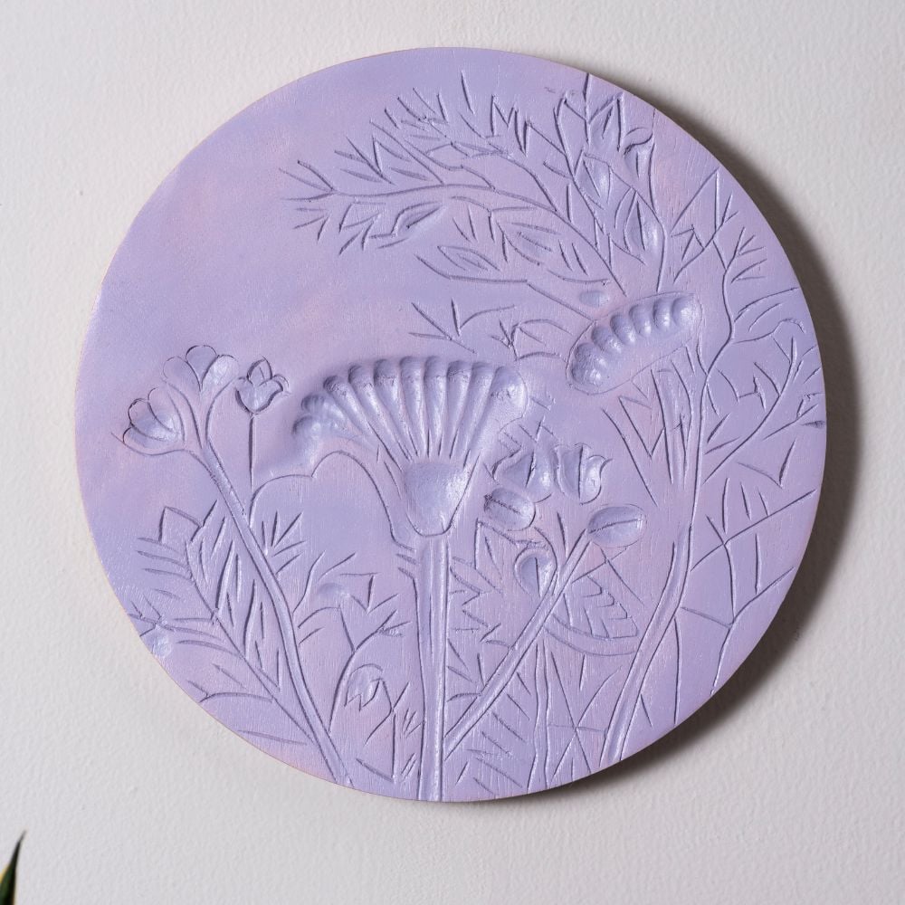 Enhance your home décor with this lavender wooden wall plate, beautifully hand-carved with intricate floral and leafy motifs. Its soft lavender hue adds a calming and sophisticated charm to any space. Packed & quality-checked by Indianshelf.