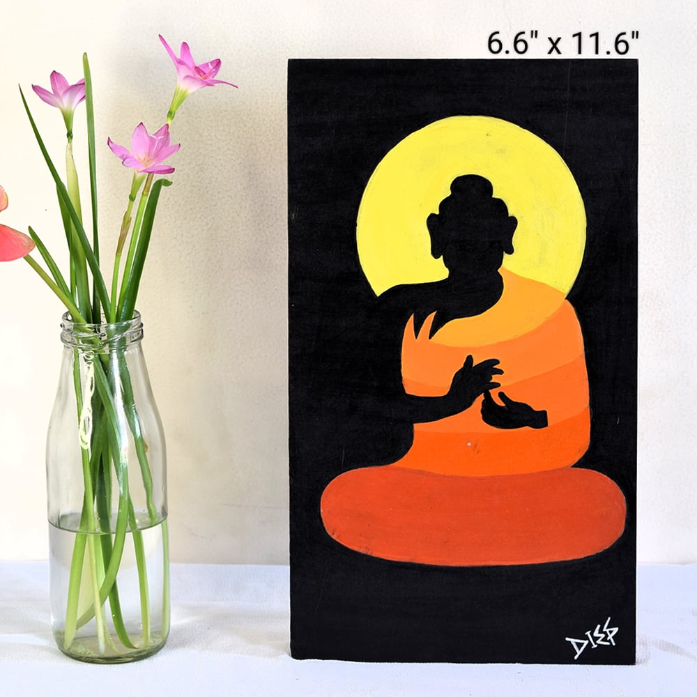 • Meditating Buddha Illustration Acrylic on Wooden Panel by Artist Dimpana | 6.6 x 11.6 Inches