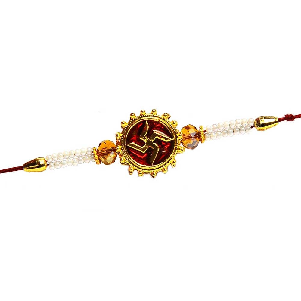 • Meenakari Swastik Rakhi with Pearls