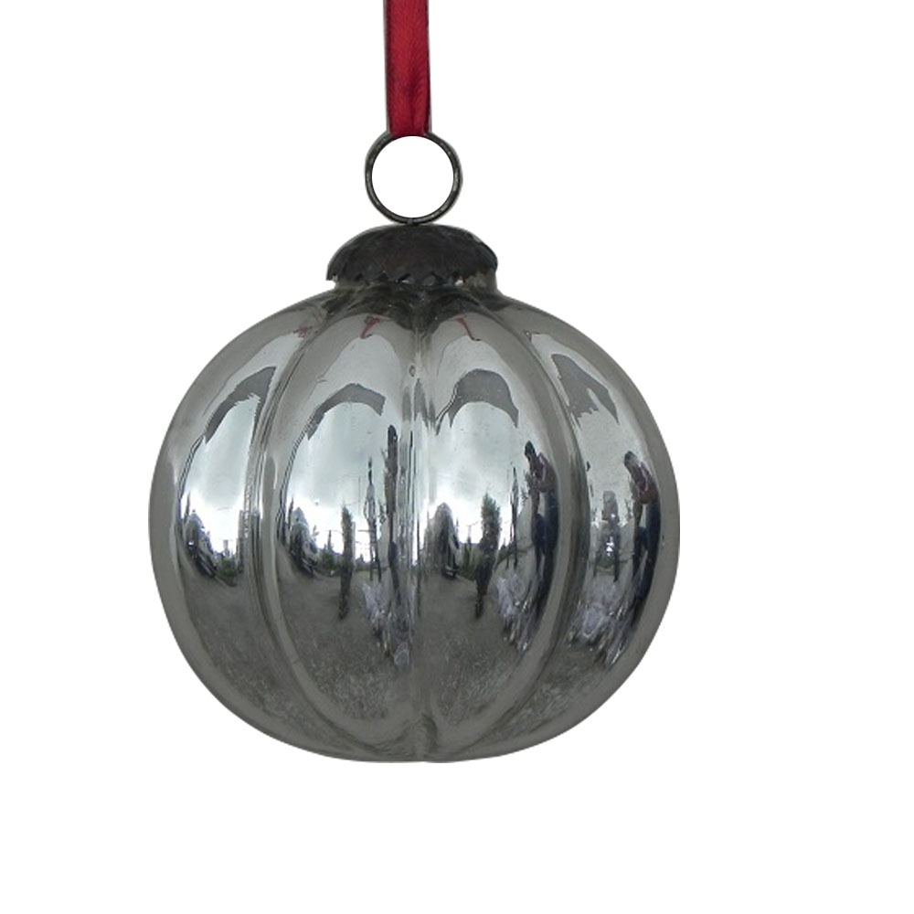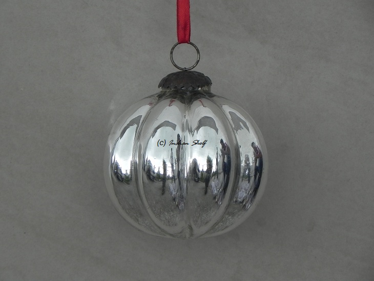 Indianshelf.com for bulk/wholesale orders.Indianshelf.us for personal purchases.The Silver Melon Glass Christmas Hanging Ornaments bring a sophisticated and stylish sparkle to your holiday décor. With their gleaming silver color and melon-inspired shape, these ornaments create a graceful, timeless effect on your tree or festive display. Perfect for adding an elegant touch, they capture the light and reflect it beautifully, enhancing the overall festive atmosphere.