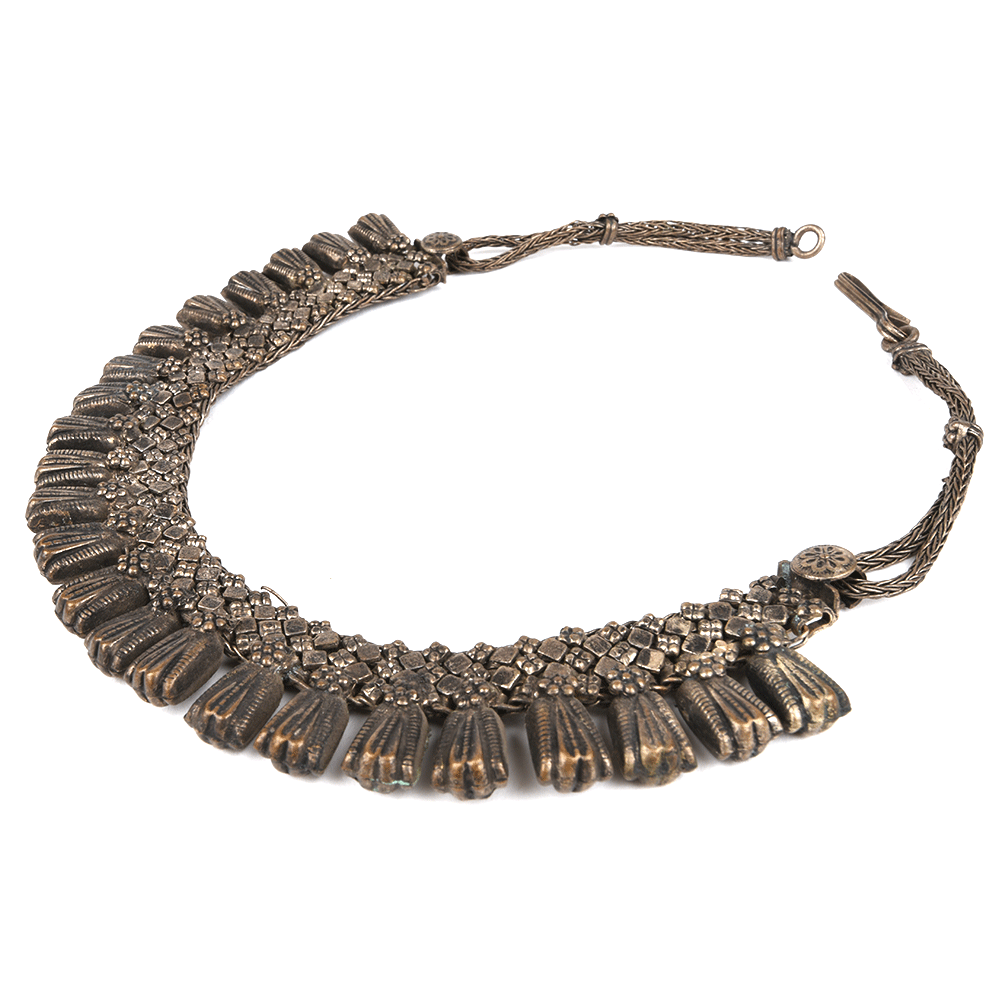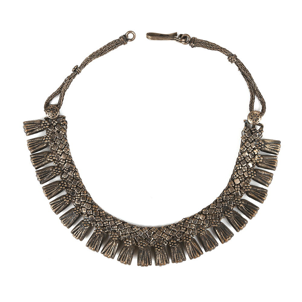 This Metal Alloy Choker with Oxidised Silver Finish captures the spirit of tribal elegance blended with modern artistry. Handcrafted from durable metal alloy, the choker features a beautifully aged oxidised silver tone accentuated with multicolor highlights. Its intricate motifs and vibrant detailing bring together tradition and individuality — making it a statement accessory that speaks of strength, creativity, and timeless craftsmanship.
