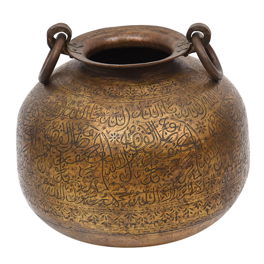 • Middle Eastern Brass Pot with Arabic Calligraphy