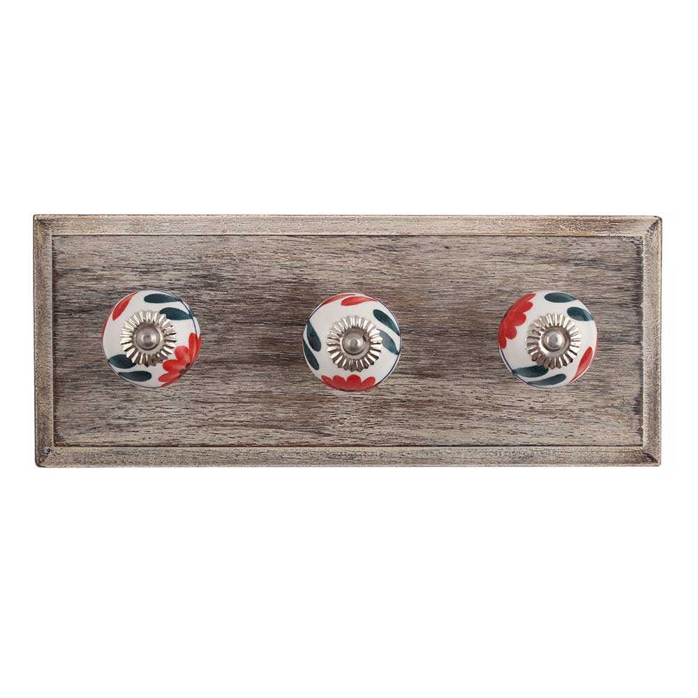 Mini Carnation Ceramic Wooden Hook. A Perfect Complement to the Soft Tone of the Wood are these White Traditional Hat & Coat Hook Made of Genuine Porcelain and Brass. It can be use to Hang Jewellery, Leashes, Towels, Scarves, Light Weight Sweaters, Caps Etc.