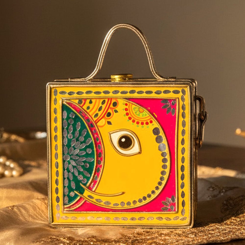 • Mini Ganpati Lippan Art Handcrafted Square Sling Bag