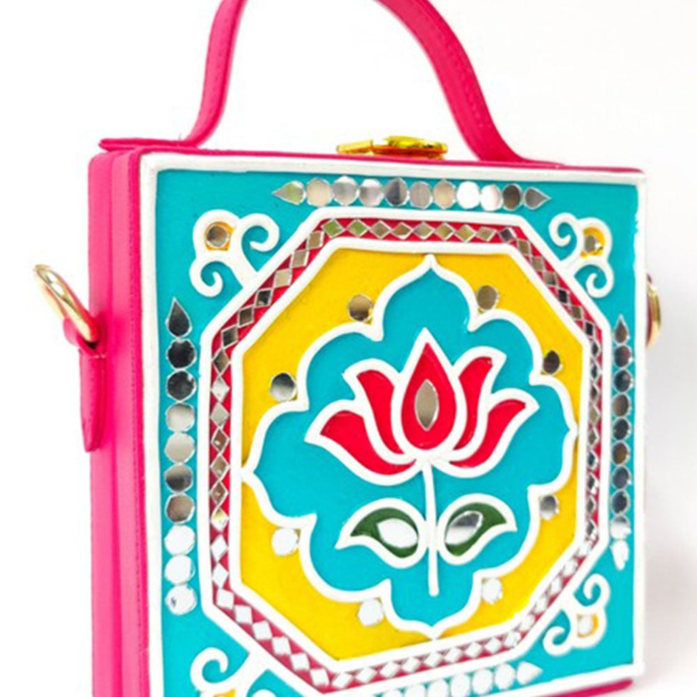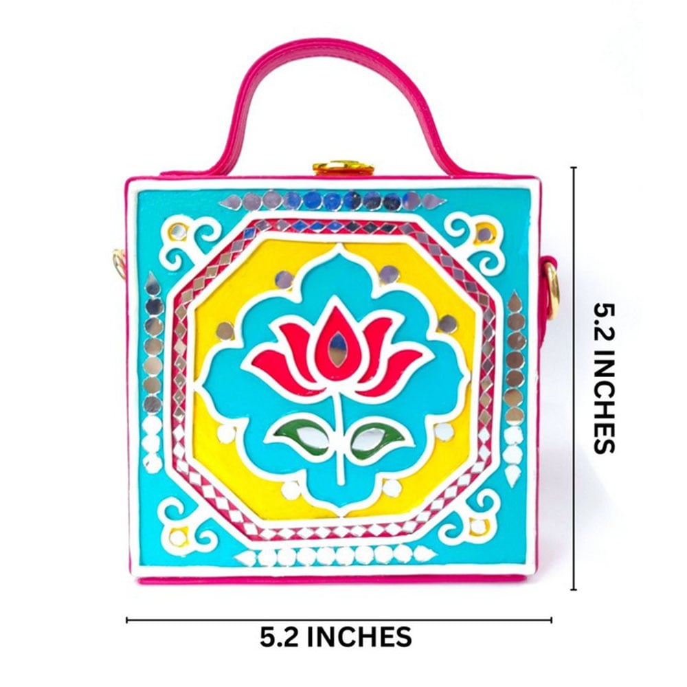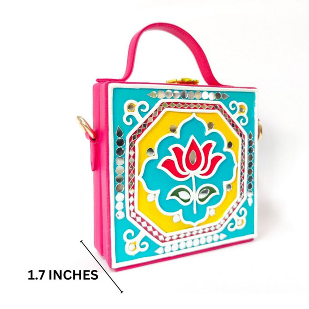 Mini Lotus Lippan Art Handcrafted Square Sling Bag