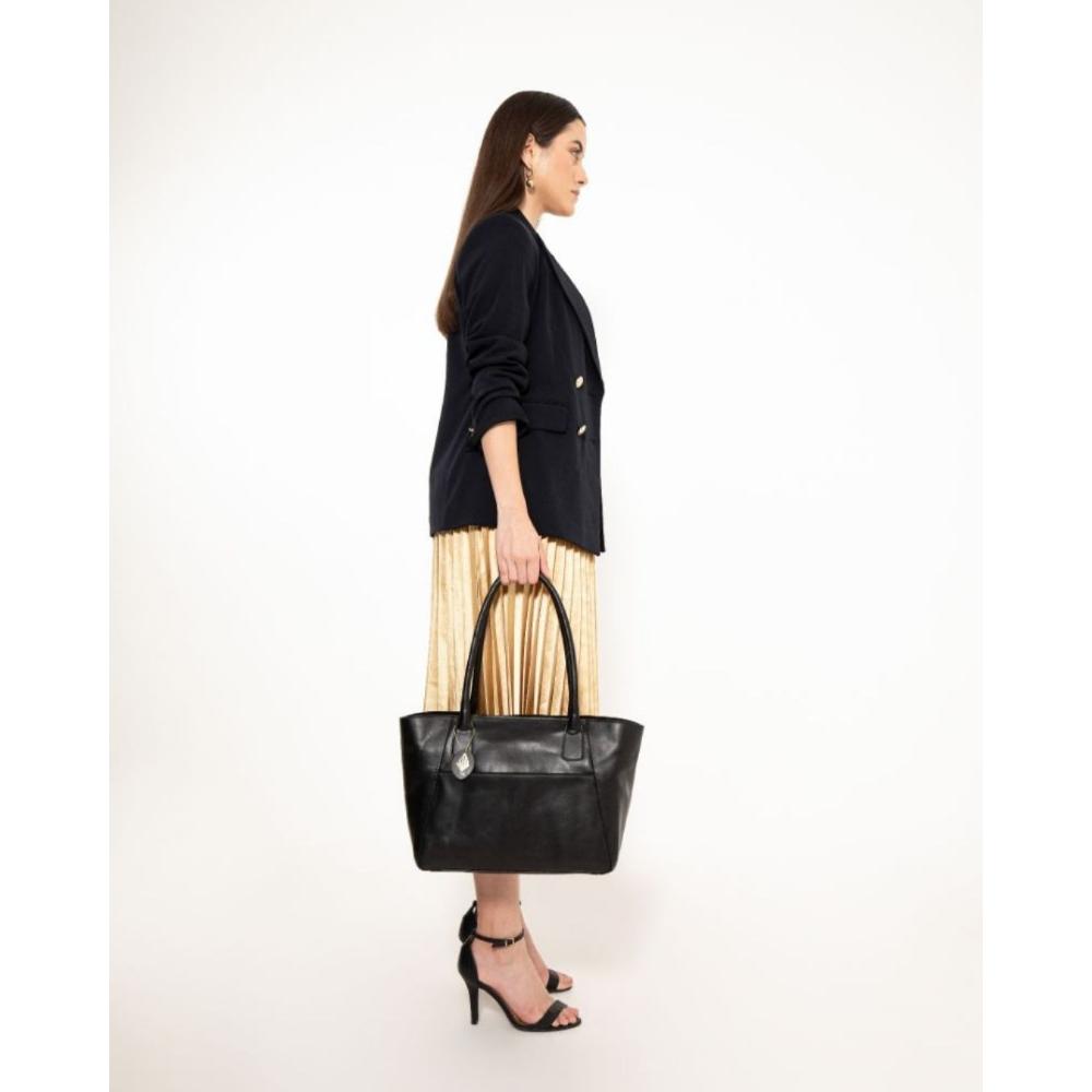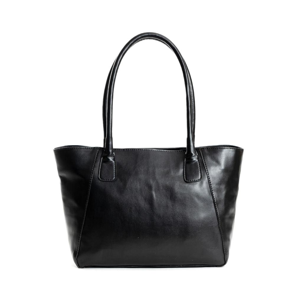 • Minimalist Black Leather Tote With Sleek Curved Handles