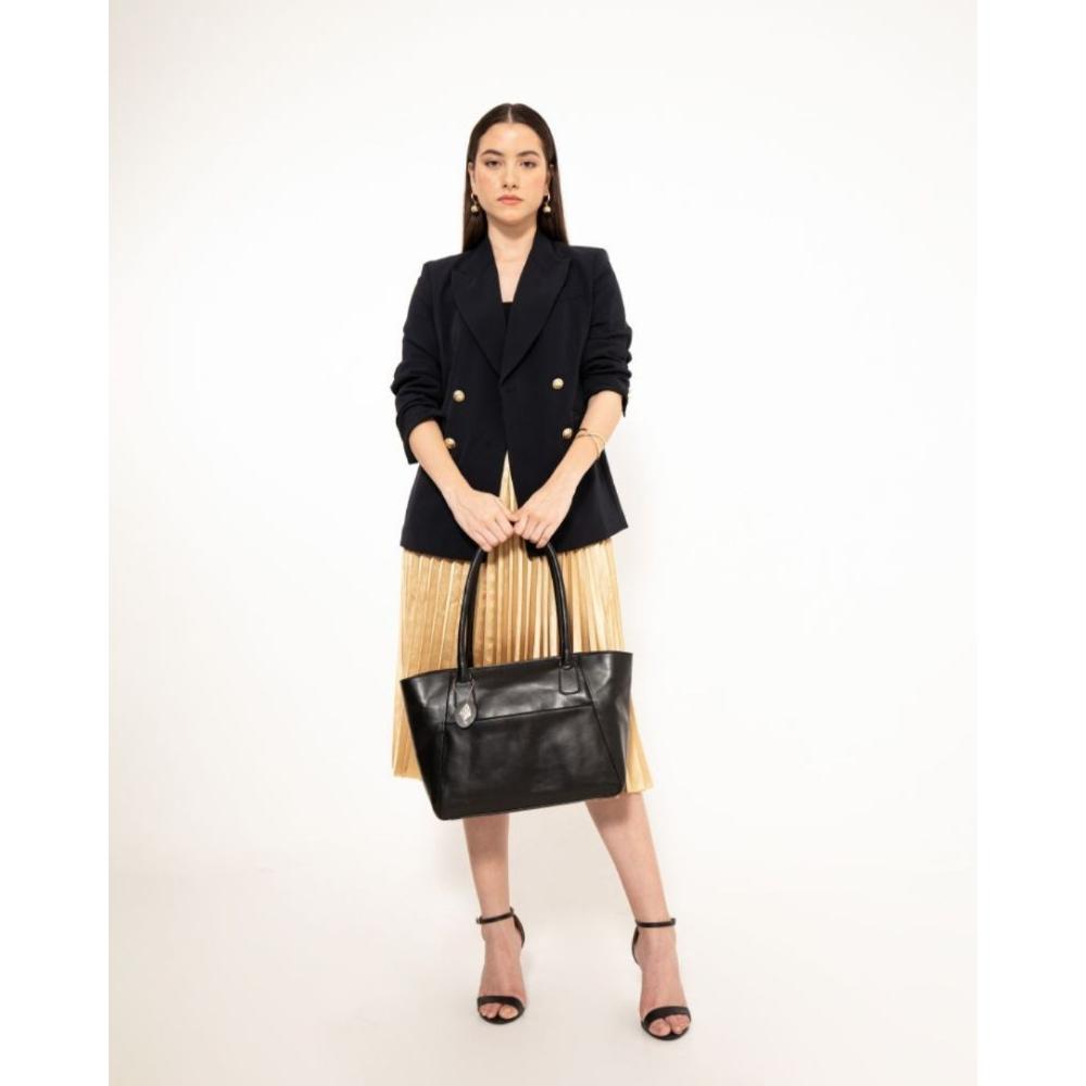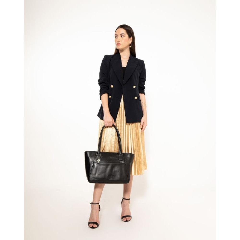 This minimalist, sleek black leather tote embodies minimalist, sleek and leather craftsmanship. Ideal for shoppers seeking distinctive pieces, it offers a statement of style and function. Packed & quality-checked by Indianshelf.