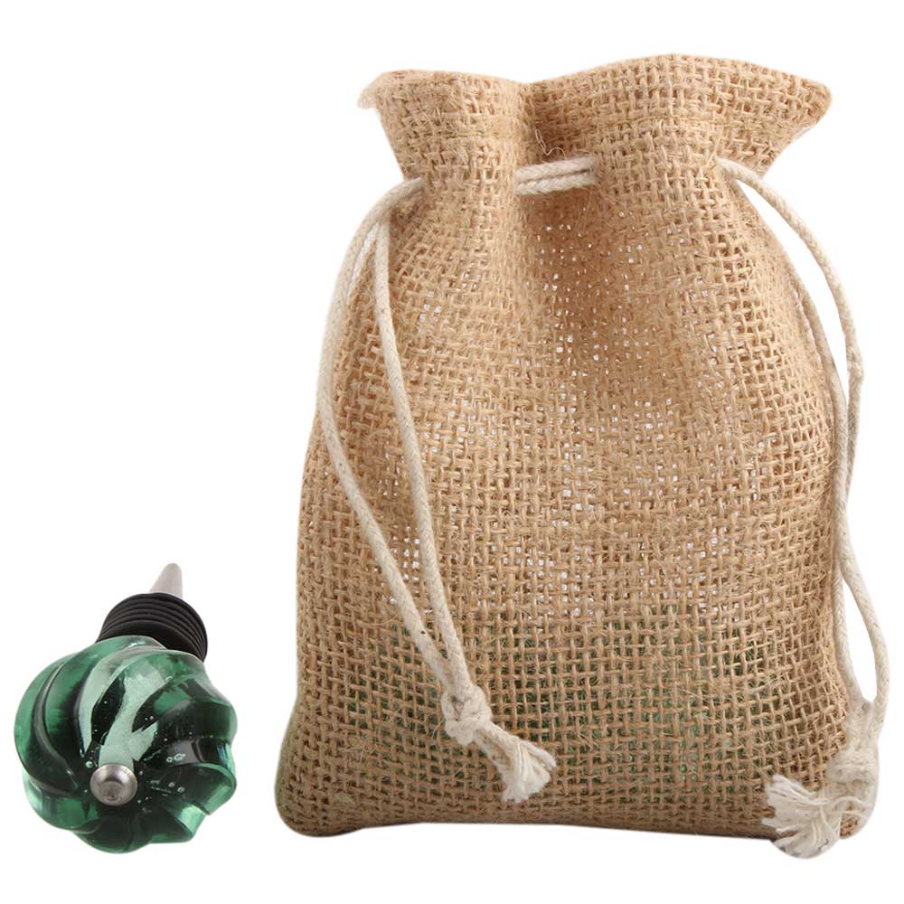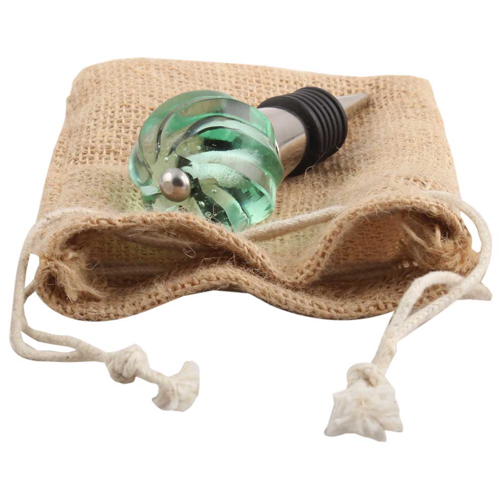 Mint Interior Glass Cut Wine Stopper.zinc alloy wine bottle stopper with attractive Jute Bag Packaging.