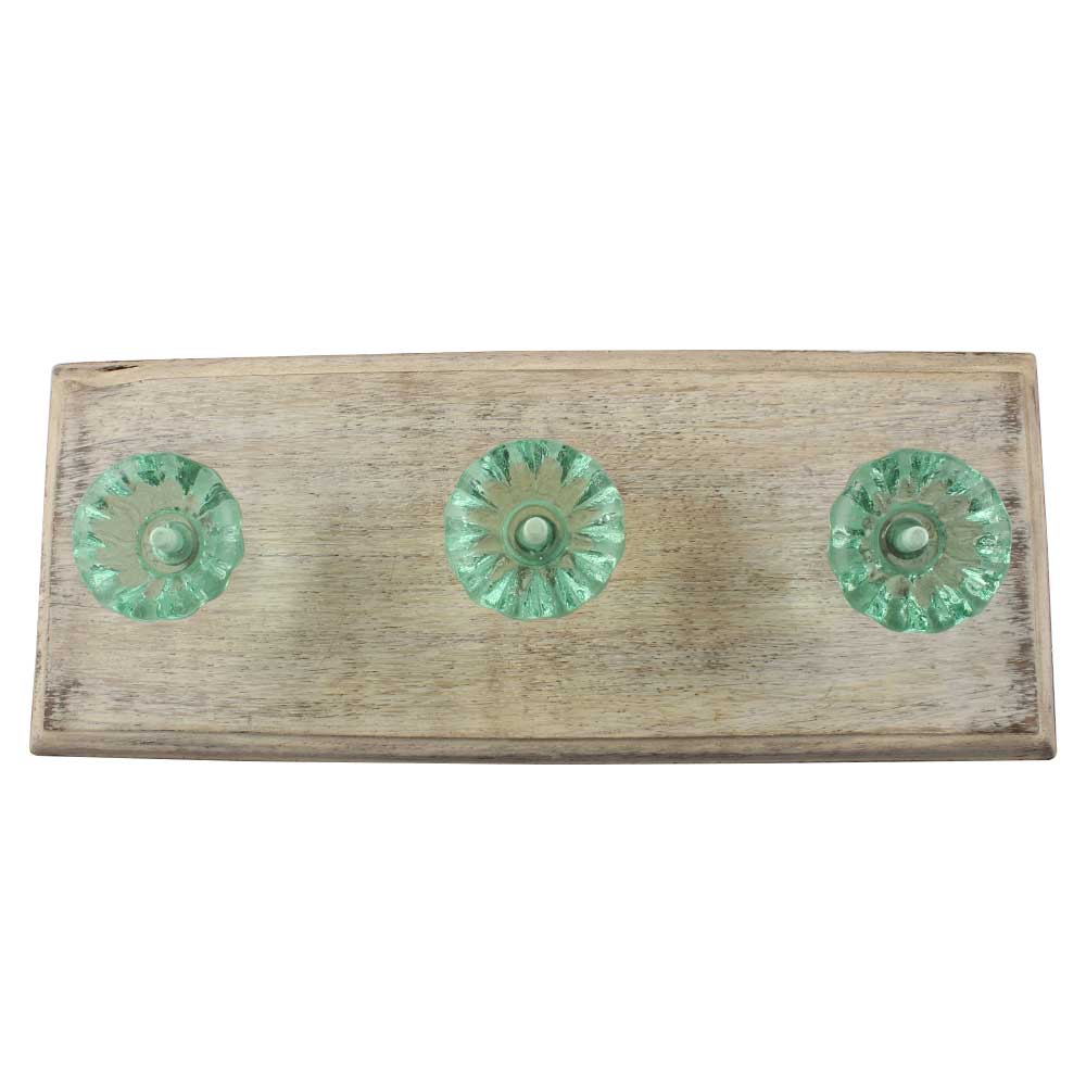 The Mint Paneled Sides Glass Wooden Hook is a handcrafted wall hook designed to be both visually stunning and practically strong. Featuring a panel-style textured glass knob in a refreshing mint green hue, this hook is mounted on a solid natural wood base that brings warmth and balance to its sleek glass finish. Each piece is unique, combining smooth functionality with a pop of pastel color—perfect for elevating your everyday storage.