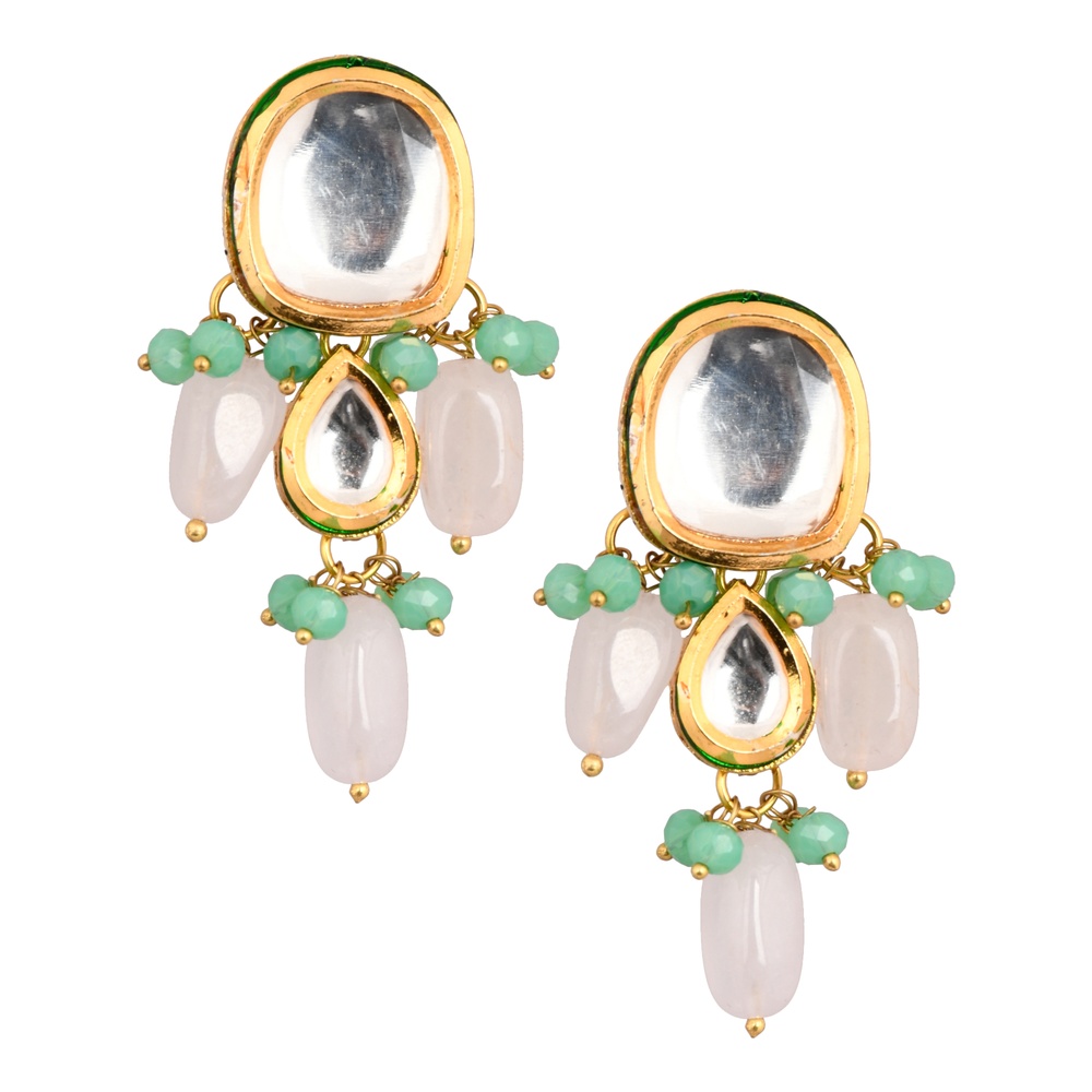 - Colour: Gold base with clear mirror stones, green beads and white bead drops