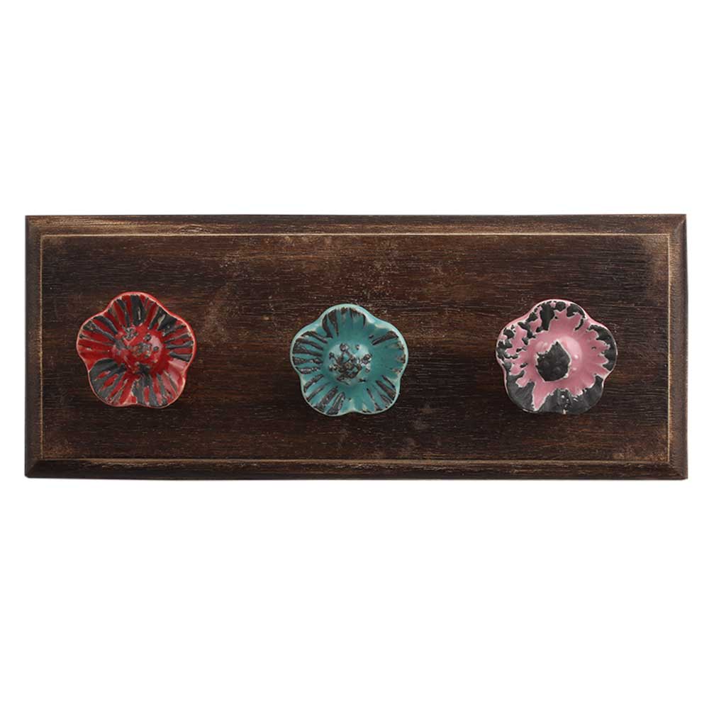Mix Daffodils Ceramic Etched Wooden Hooks. A Perfect Complement to the Soft Tone of the Wood are these White Traditional Hat Coat Hook Made of Genuine Porcelain and Brass. It can be use to Hang Jewellery, Leashes, Towels, Scarves, Light Weight Sweaters, Caps Etc.