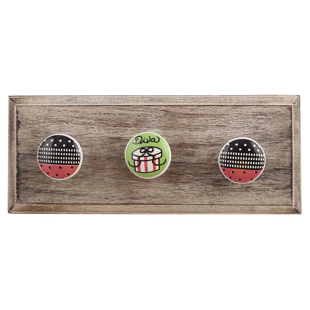 Mix Multicolor Ceramic Flat Wooden Hooks. A Perfect Complement to the Soft Tone of the Wood are these White Traditional Hat Coat Hook Made of Genuine Porcelain and Brass. It can be use to Hang Jewellery, Leashes, Towels, Scarves, Light Weight Sweaters, Caps Etc.