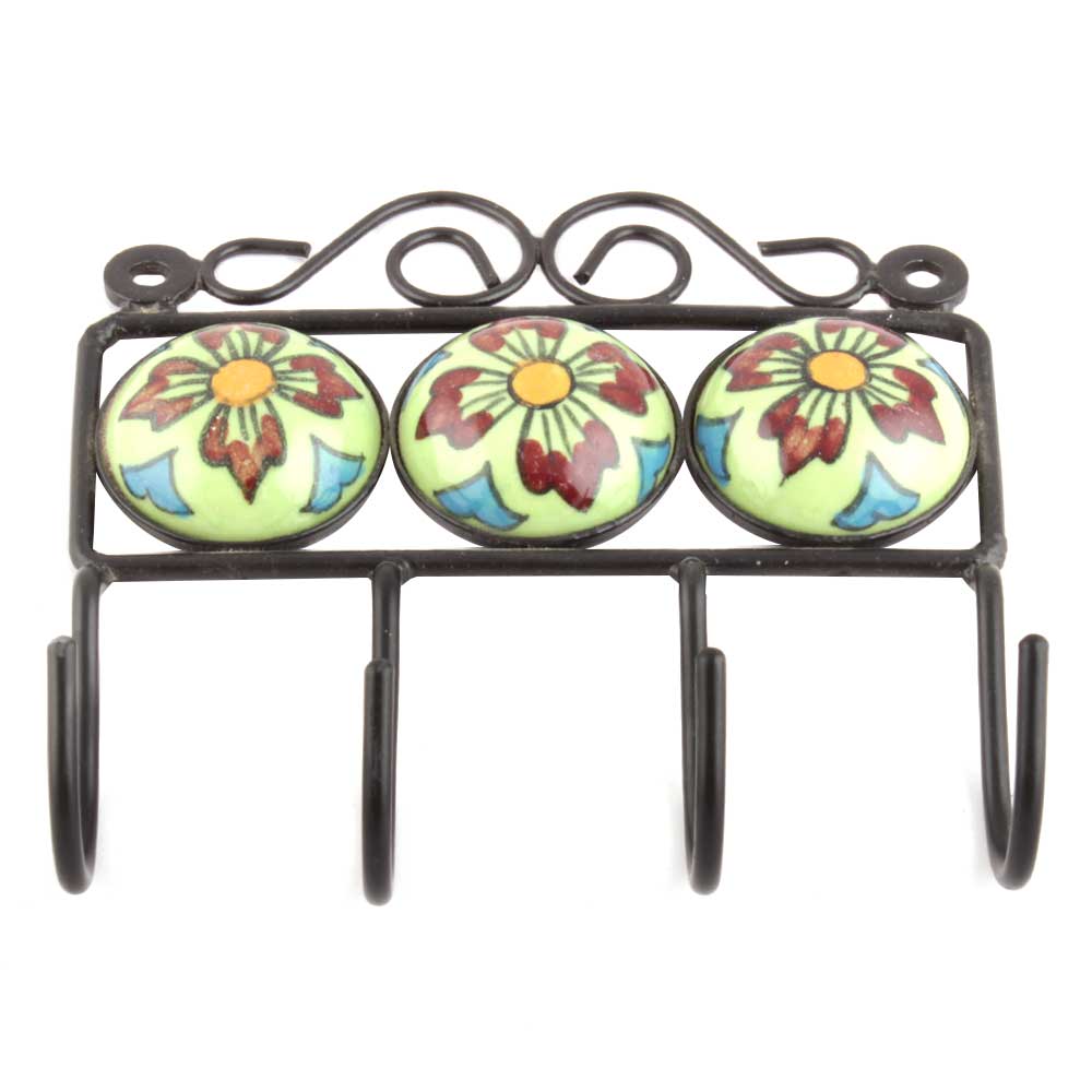 Mixed Ceramic Floral Tiles Hooks Online. When Put on Wall or Cabinet It is An Art in Itself. The Metal Part of this Hook is Black Powder Coated.