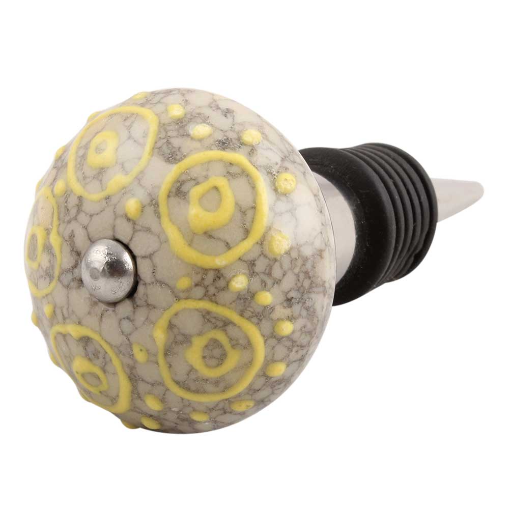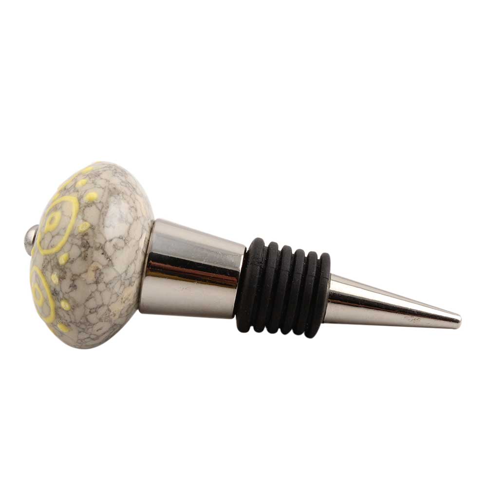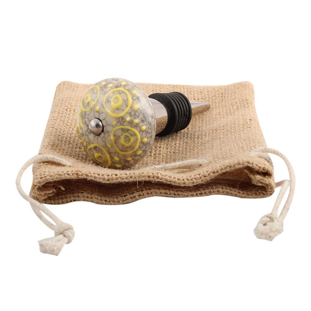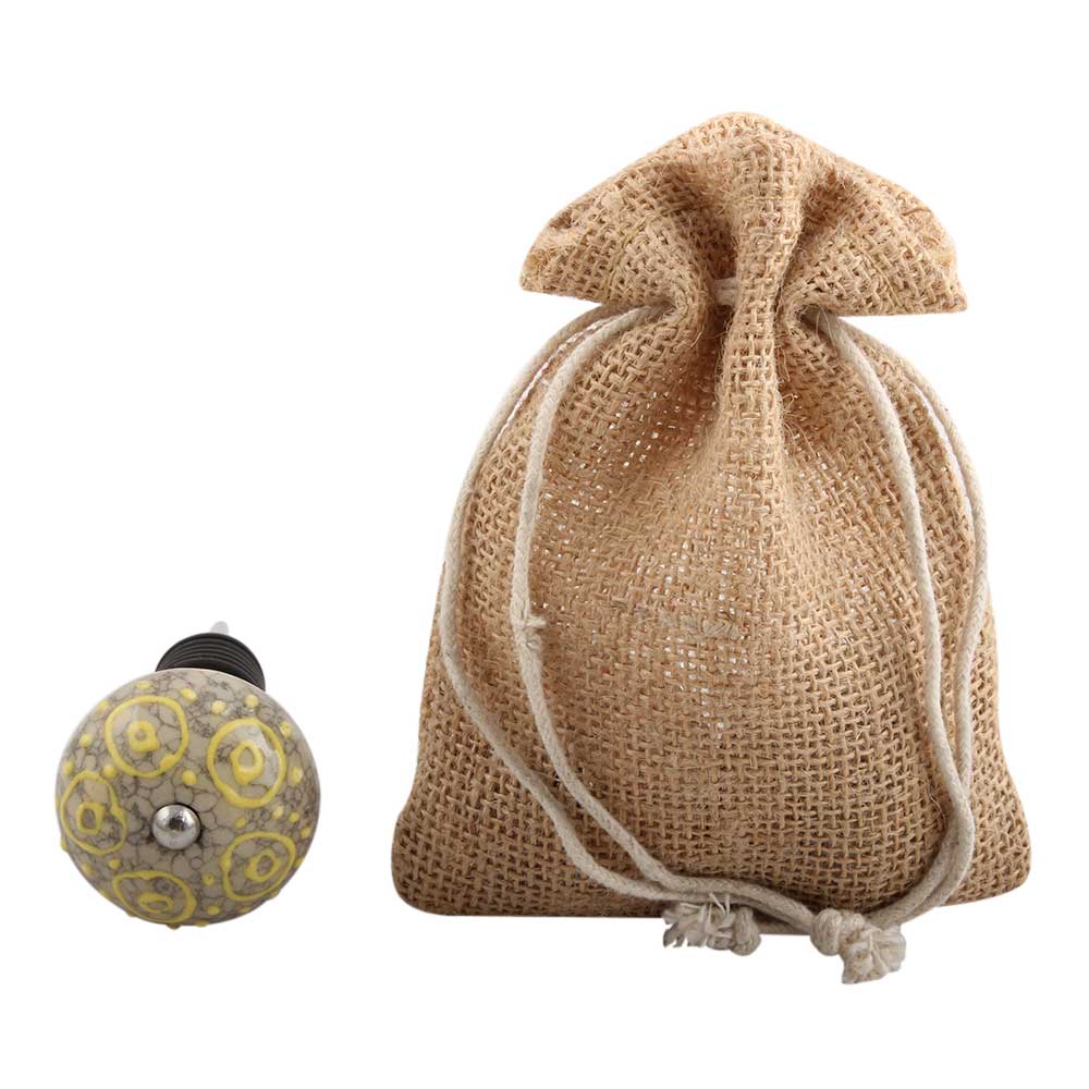 Mixed Circular Crackle Ceramic Wine Stopper. Zinc Alloy Wine Bottle Stopper with Attractive Jute Bag Packaging.