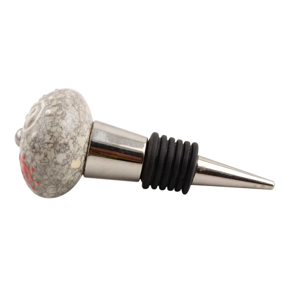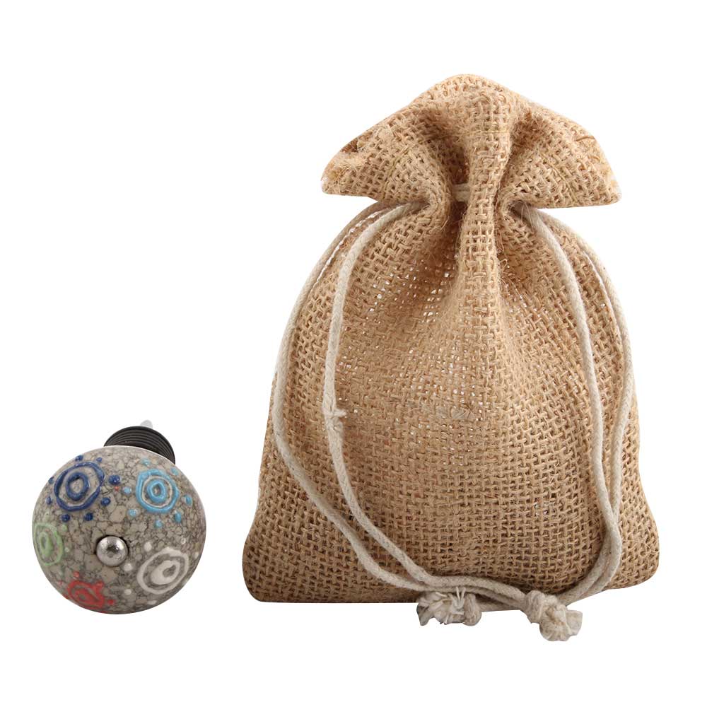 Mixed Circular Crackle Ceramic Wine Stopper. Zinc Alloy Wine Bottle Stopper with Attractive Jute Bag Packaging.