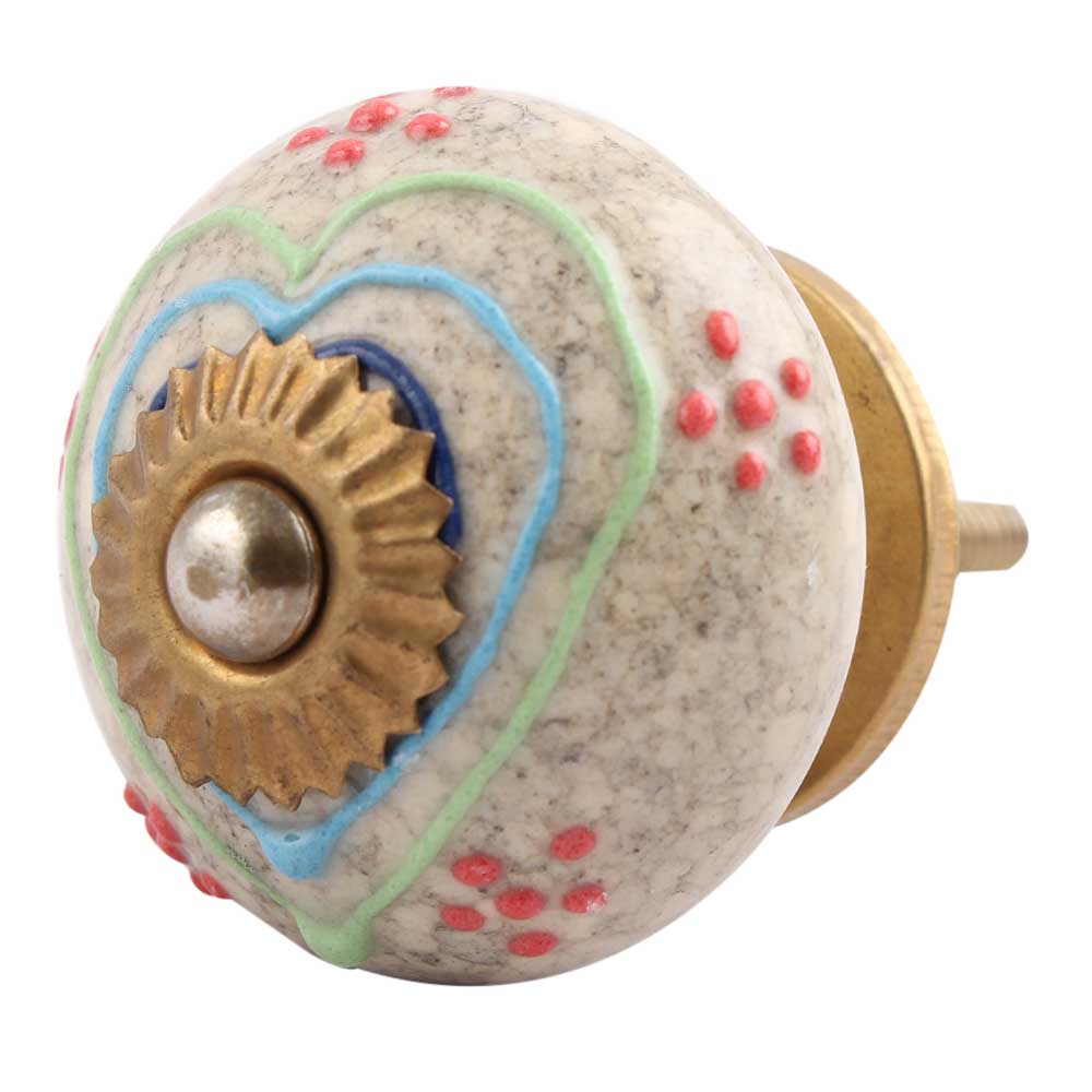 Mixed Color Heart Crackle Ceramic Drawer Knob