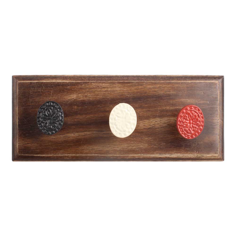 Mixed Color Oval Flower Metal Wooden Hook. A Perfect Complement to the Soft Tone of the Wood are these White Traditional Hat & Coat Hook Made of Genuine Porcelain and Brass. It can be use to Hang Jewellery, Leashes, Towels, Scarves, Light Weight Sweaters, Caps Etc.