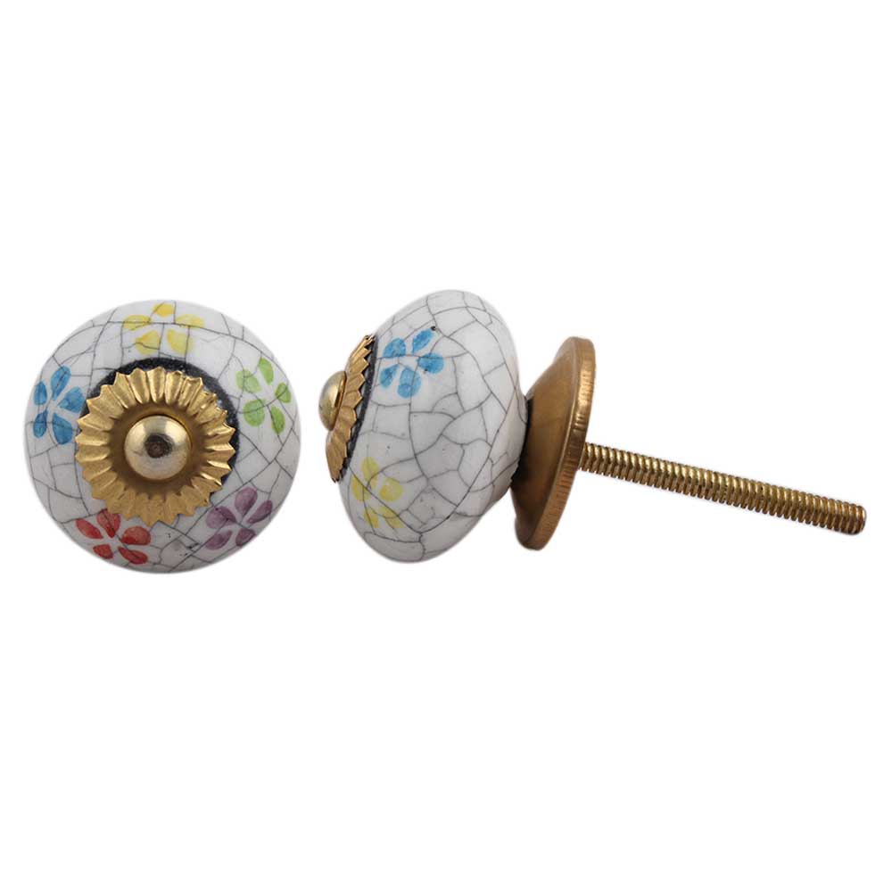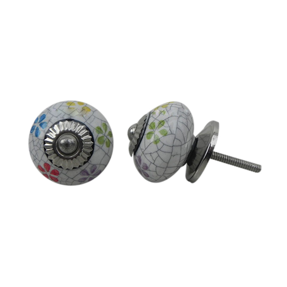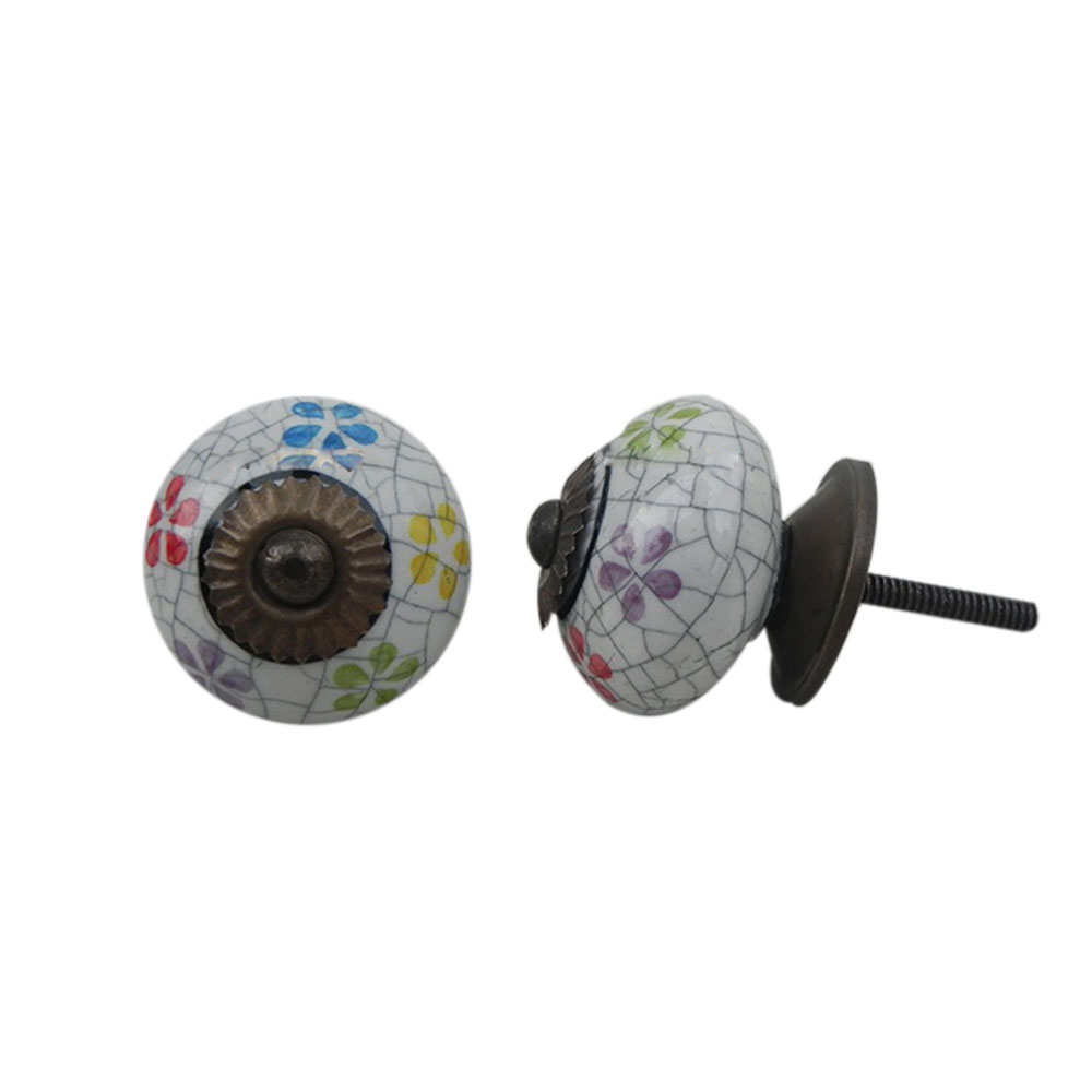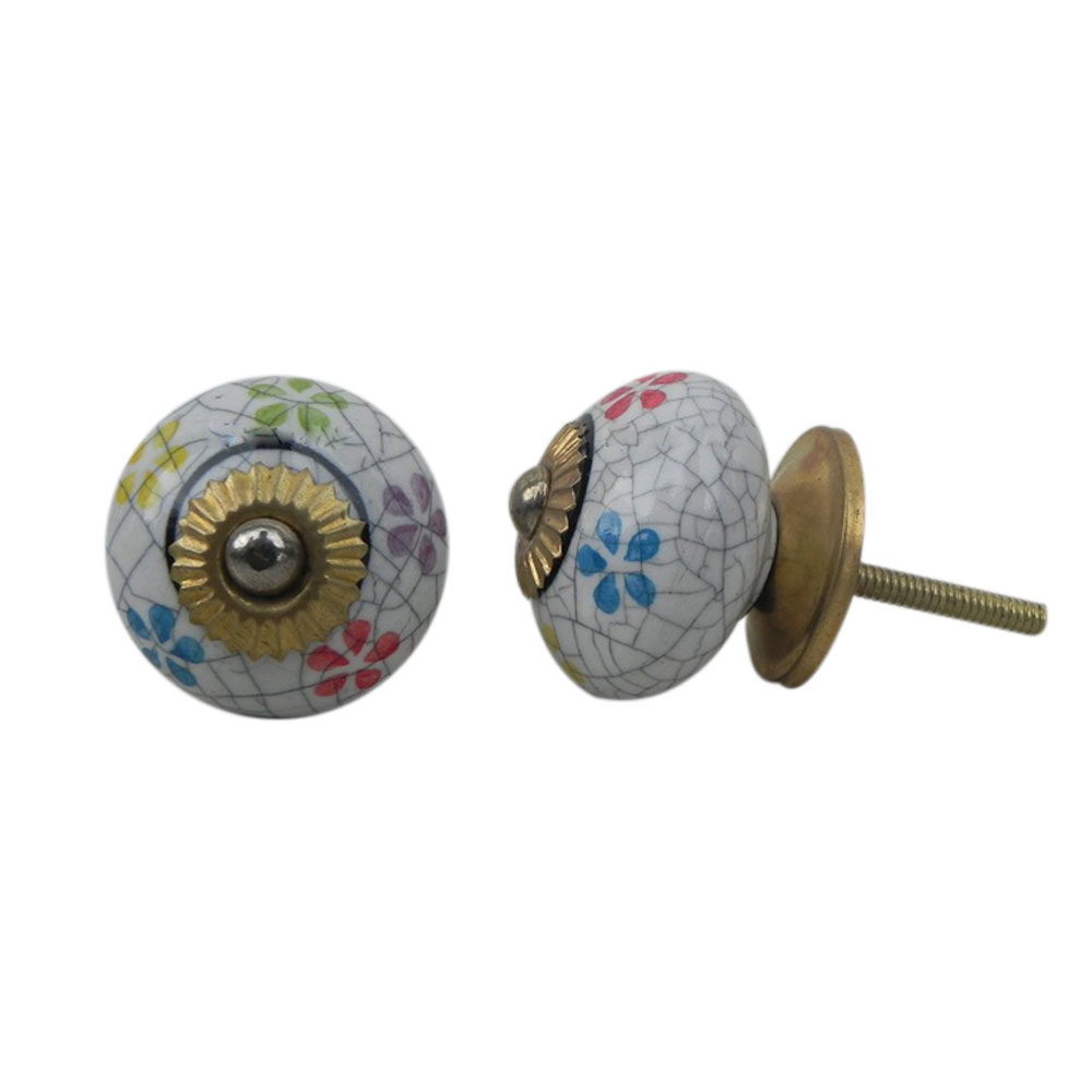 Mixed Floral Crackle Ceramic Drawer Knob