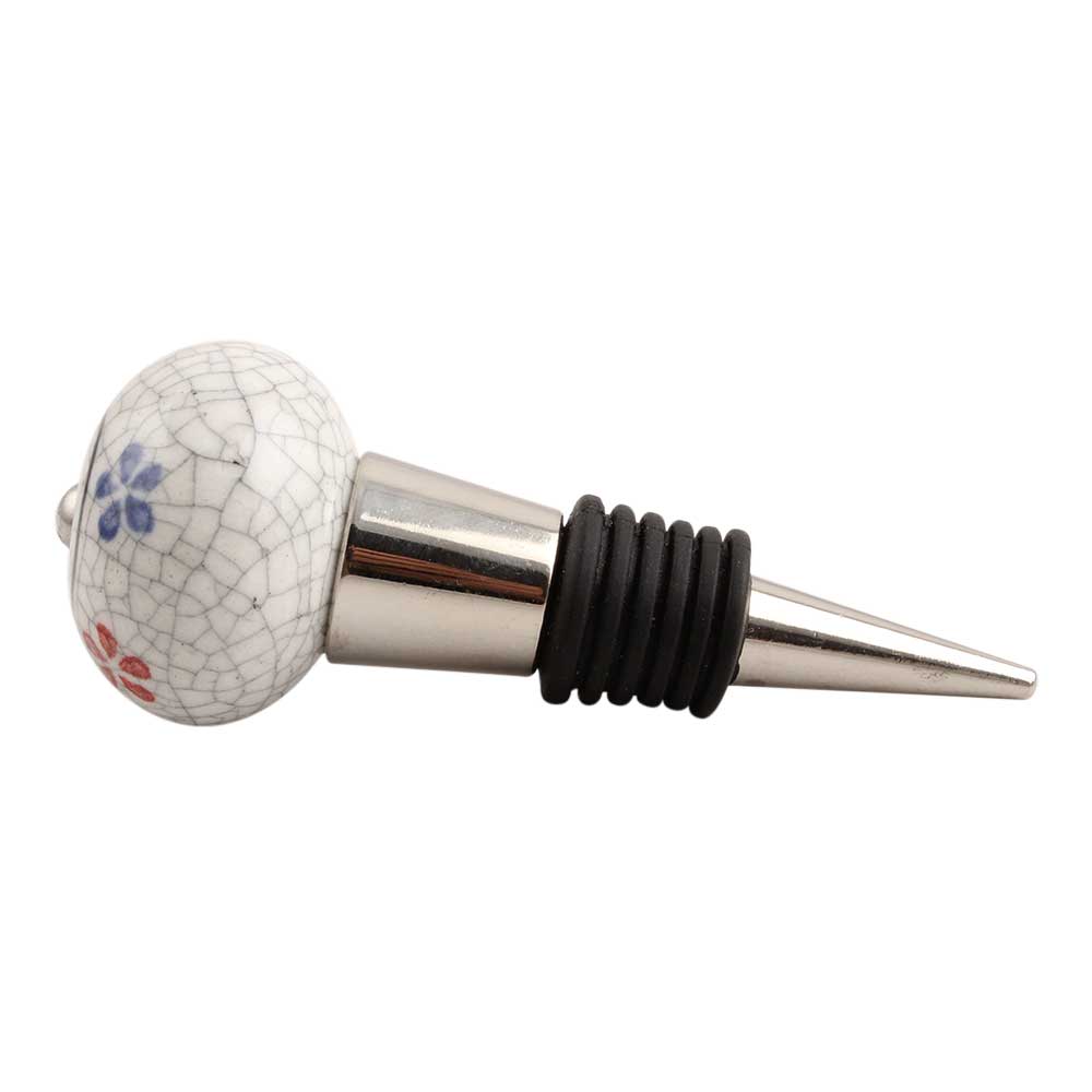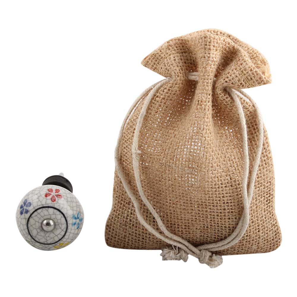 Mixed Floral Crackle Ceramic Wine Stopper.Zinc Alloy Wine Bottle Stopper with Attractive Jute Bag Packaging.