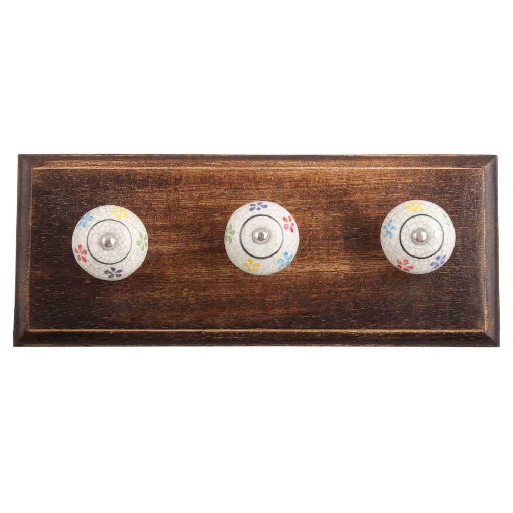 Mixed Floral Crackle Ceramic Wooden Hook. A Perfect Complement to the Soft Tone of the Wood are these White Traditional Hat and Coat Hook Made of Genuine Porcelain and Brass. It can be use to Hang Jewellery, Leashes, Towels, Scarves, Light Weight Sweaters, Caps etc.