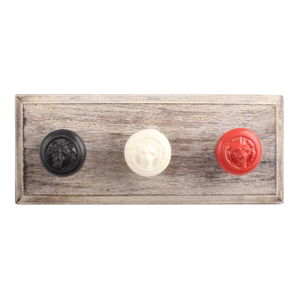 Mixed Lion Metal Wooden Hook. A Perfect Complement to the Soft Tone of the Wood are these White Traditional Hat & Coat Hook Made of Genuine Porcelain and Brass. It can be use to Hang Jewellery, Leashes, Towels, Scarves, Light Weight Sweaters, Caps Etc.