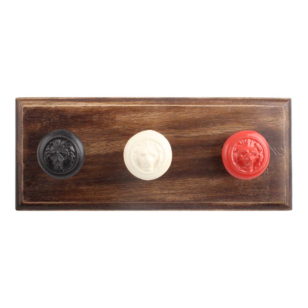 Mixed Lion Metal Wooden Hook. A Perfect Complement to the Soft Tone of the Wood are these White Traditional Hat & Coat Hook Made of Genuine Porcelain and Brass. It can be use to Hang Jewellery, Leashes, Towels, Scarves, Light Weight Sweaters, Caps Etc.