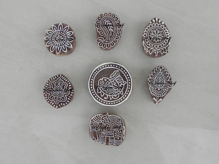 Mixed Printing Block. Ideal for Using on Fabric, Paper, Canvas, etc. These Blocks can be use to Print with Oil Colors, Fabric Colors, Water Colors, Acrylic Colors and Vegetable Colors.