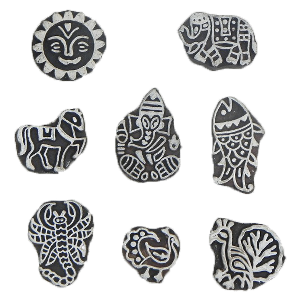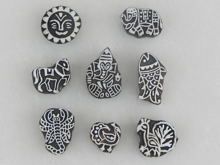 Mixed Printing Block. Ideal for Using on Fabric, Paper, Canvas, etc. These Blocks can be use to Print with Oil Colors, Fabric Colors, Water Colors, Acrylic Colors and Vegetable Colors.
