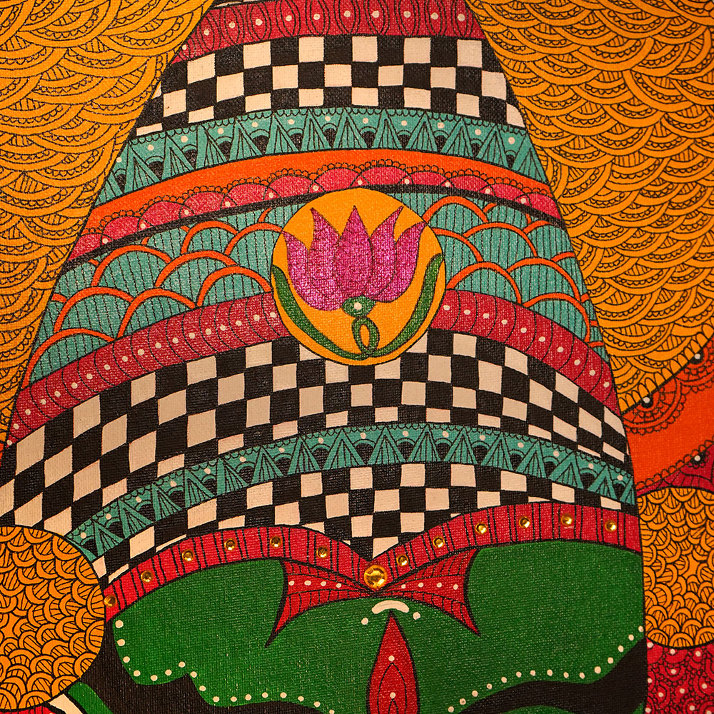 - Mesmerizing mixture of acrylic, archival ink, and genuine gemstones