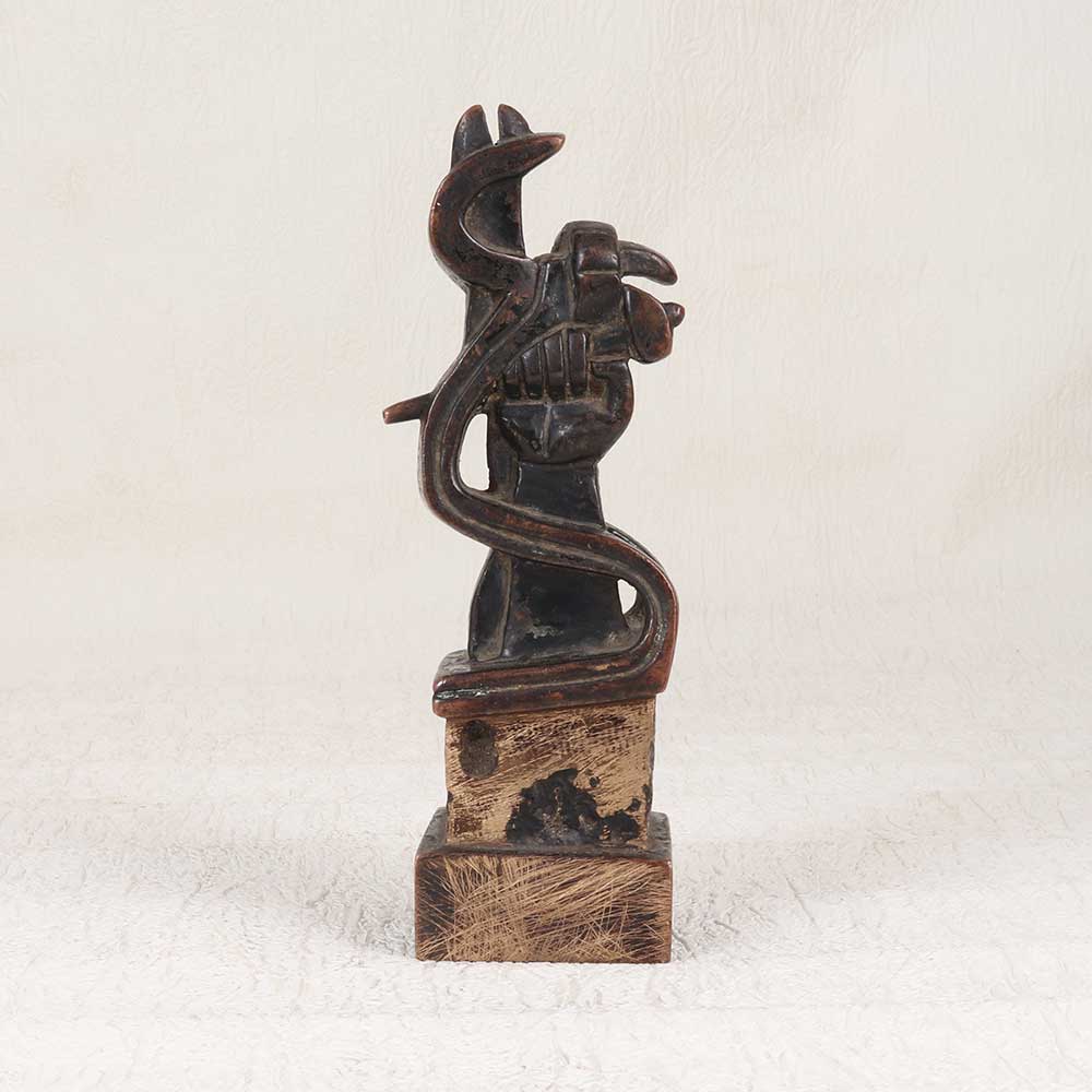 Introduce sophistication into your home with this stunning bronze modern art piece. This vintage sculpture brings together a sleek, minimalist design with the warmth and patina of aged bronze. With its fluid, organic forms, this bronze sculpture makes a striking decorative statement in both traditional and modern decors. The muted, earthy bronze tones complement a variety of color schemes from bold brights to neutral palettes. Sculptural yet understated, this modern artwork lends any space a refined, cultured ambiance. Perfect for art lovers and design aficionados, this vintage bronze piece adds a touch of sophistication to your home. Display it proudly and let its minimalist elegance speak for itself. Make a subtle but powerful decorative impact with this abstract bronze sculpture.