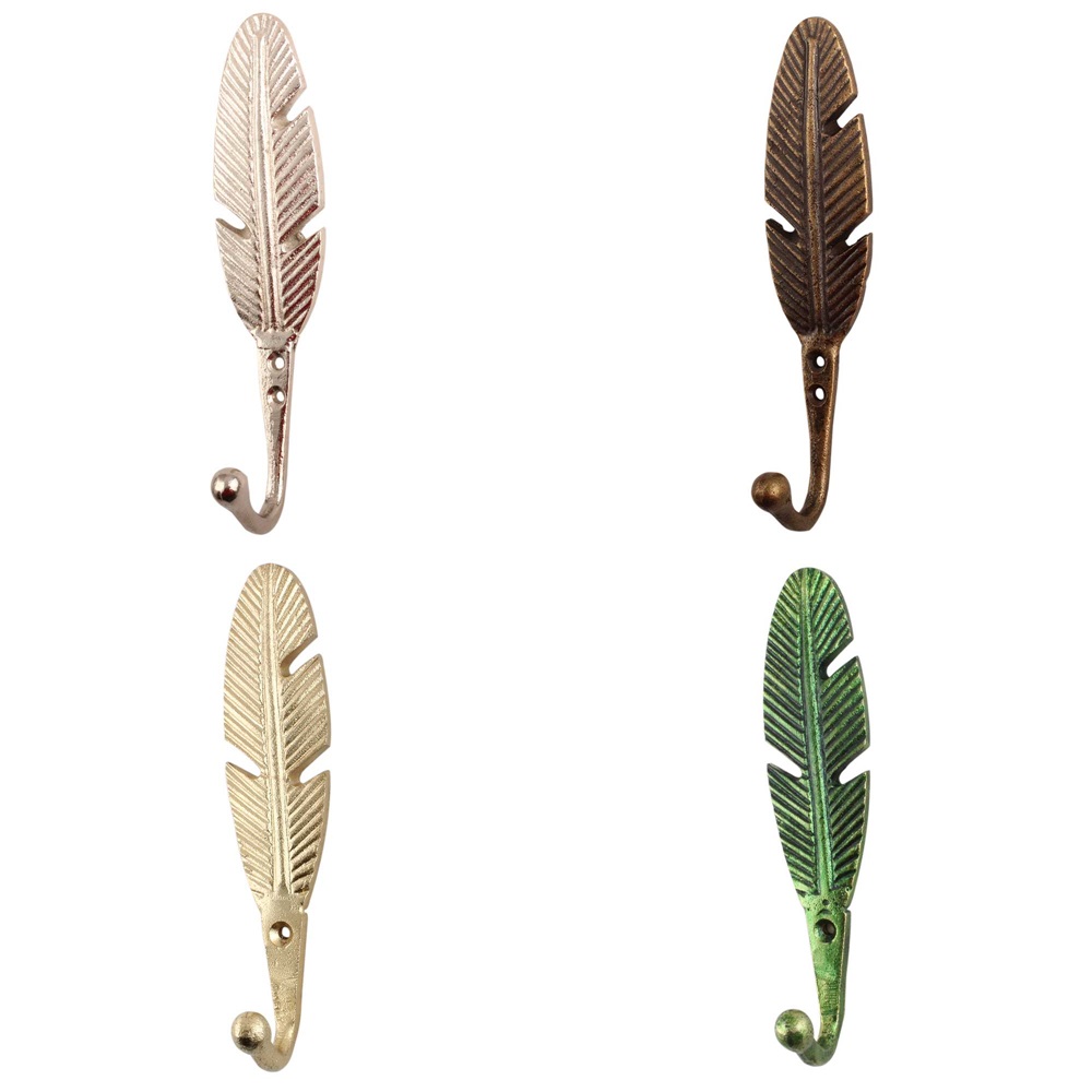 Material: Handcrafted solid cast iron Finish: Distressed matte black or antique bronze finish with detailed feather etching Installation: Wall-mounted with concealed screws (hardware included)