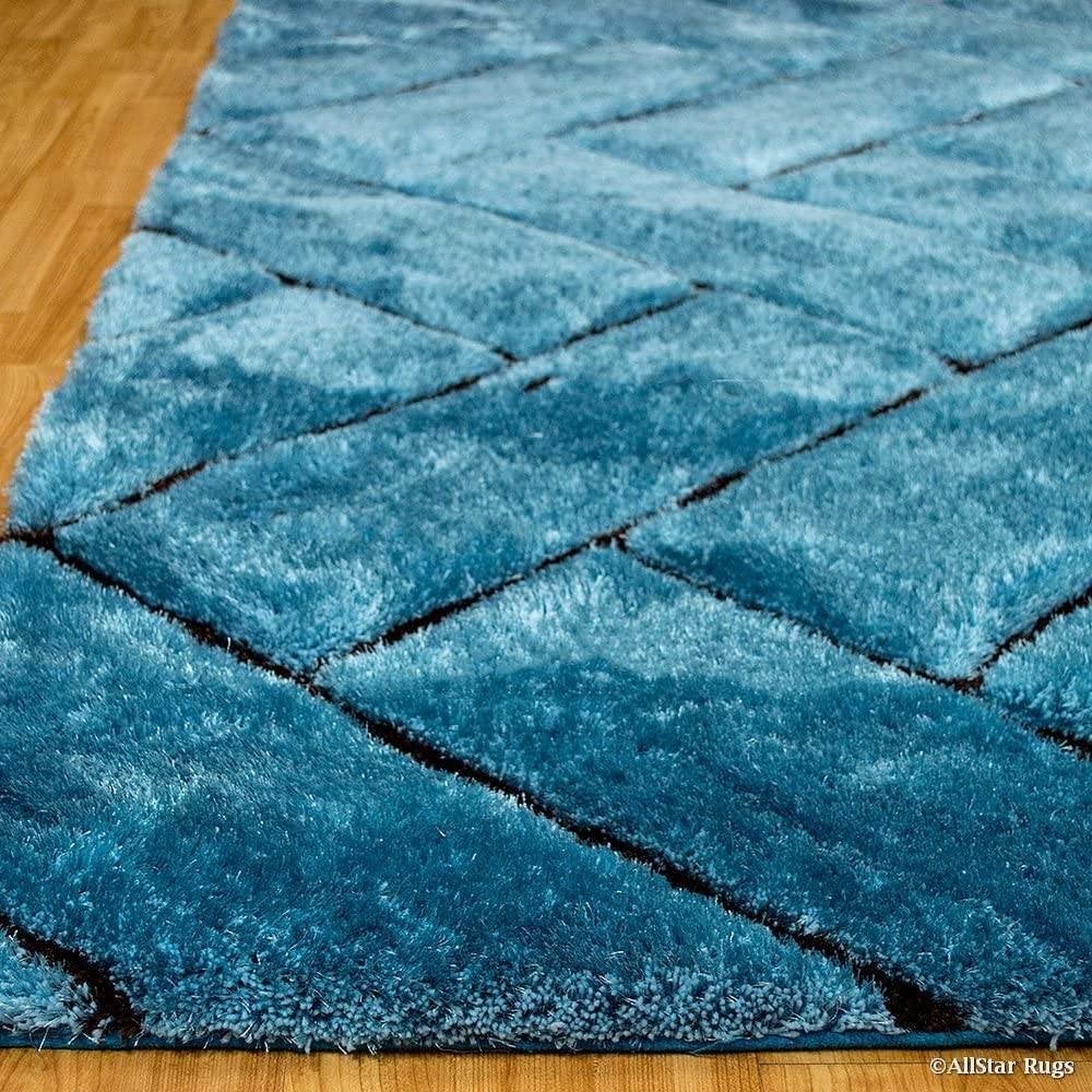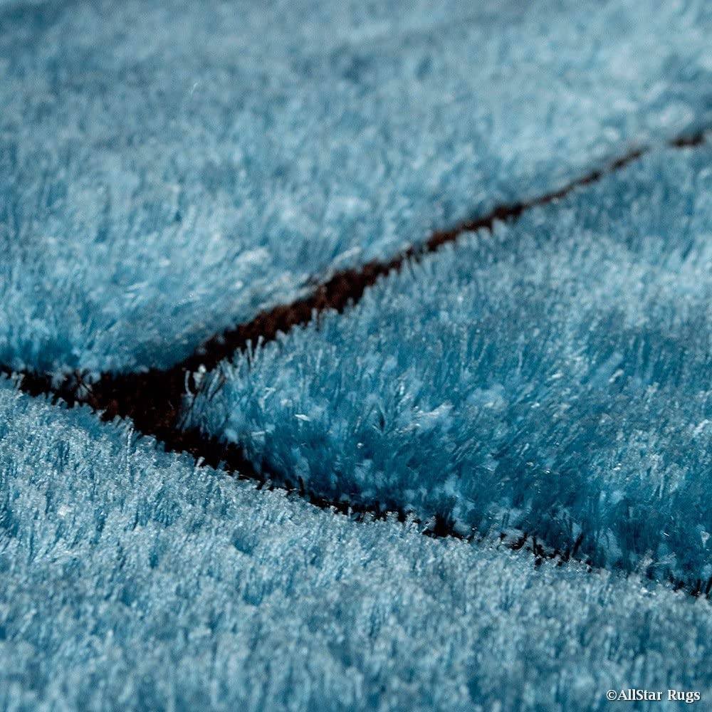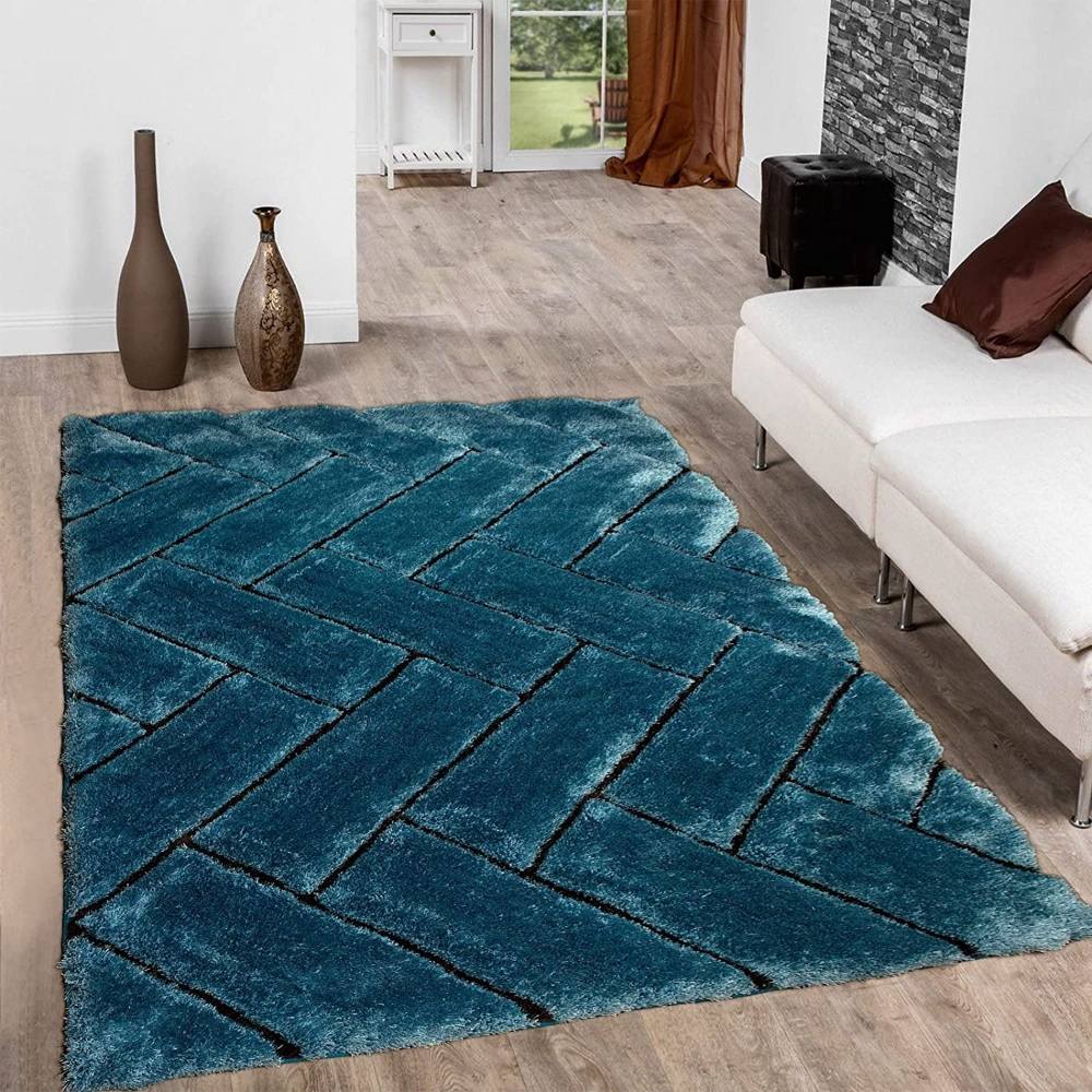 This rug combines a rich blue color palette with soft polyester fibers, offering modern flair and cozy comfort for stylish interiors.