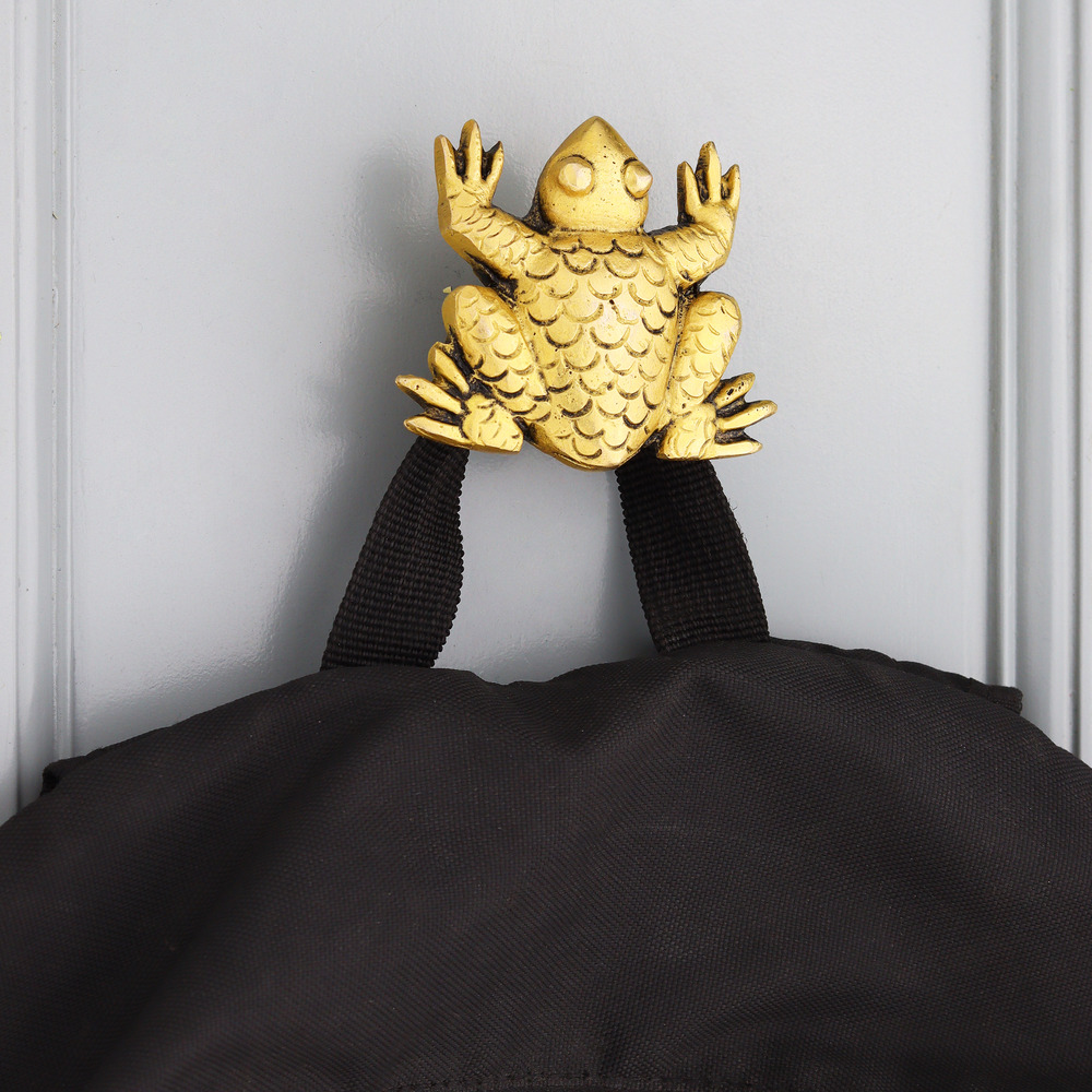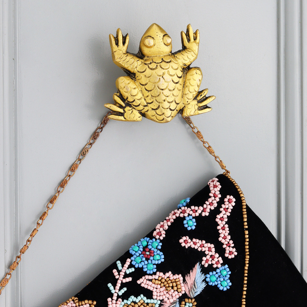 Add a touch of charm and luxury to your walls with the Modern Brass Golden Frog Wall Hook. Meticulously handcrafted from pure brass, this wall hook features a detailed frog design in a gleaming golden finish. It's more than just a hook—it's a statement piece that brings playful energy and refined design into your home. Whether you're decorating a hallway, bathroom, or kids' room, this frog-shaped wall hook adds personality while keeping your space organized.