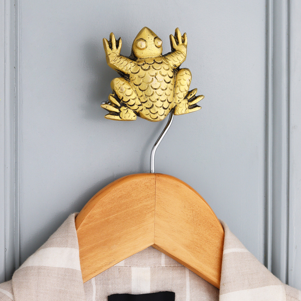 The frog shape adds a whimsical yet classy look to any wall, instantly elevating bland spaces with a golden, sculptural touch.