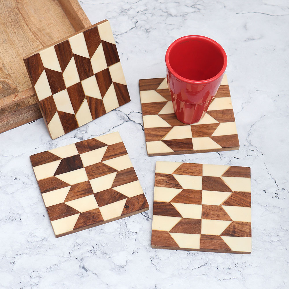 Made from high-quality wood, these coasters are built to last. The modern brown and white patterns are meticulously crafted to enhance the natural beauty of the wood while protecting your surfaces from watermarks and stains.